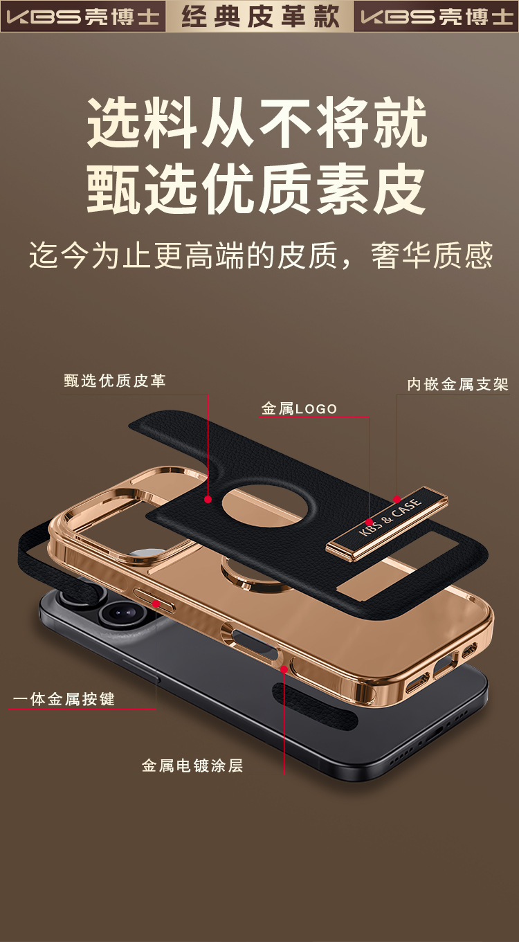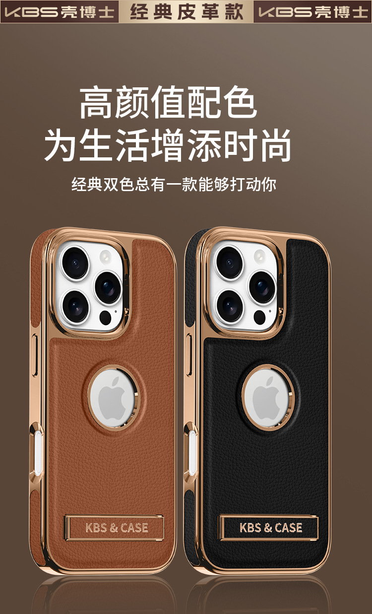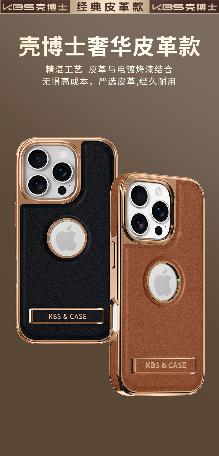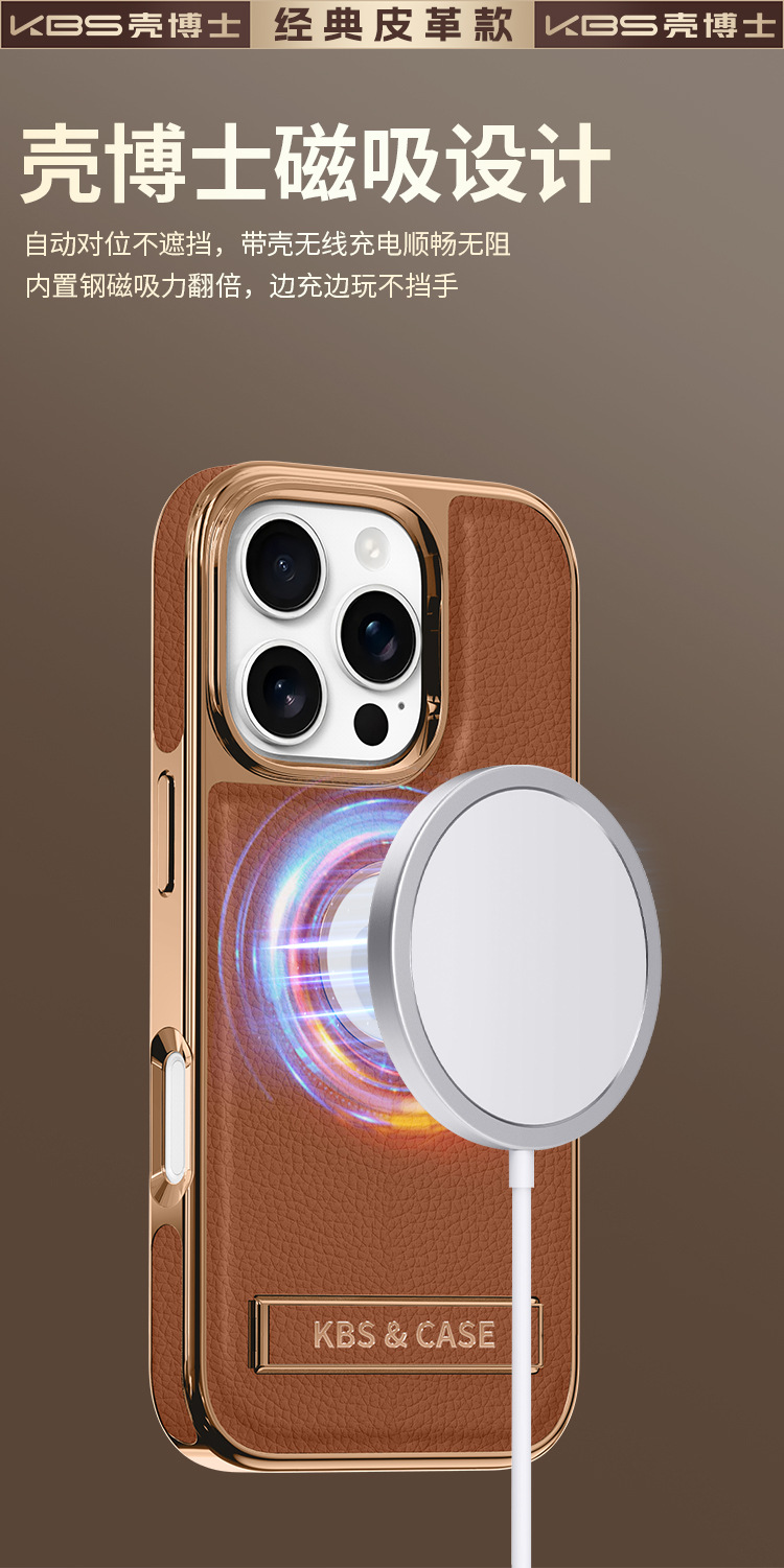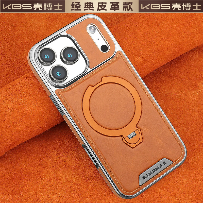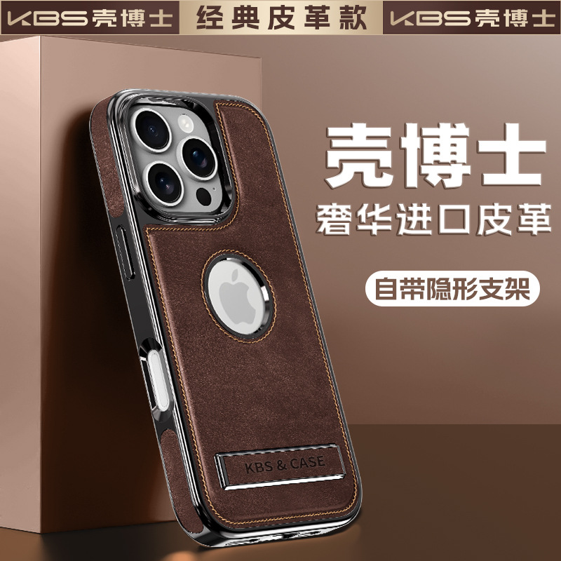 适用苹果16ProMax手机壳新款15pro皮质支架壳14磁吸商务防摔外壳