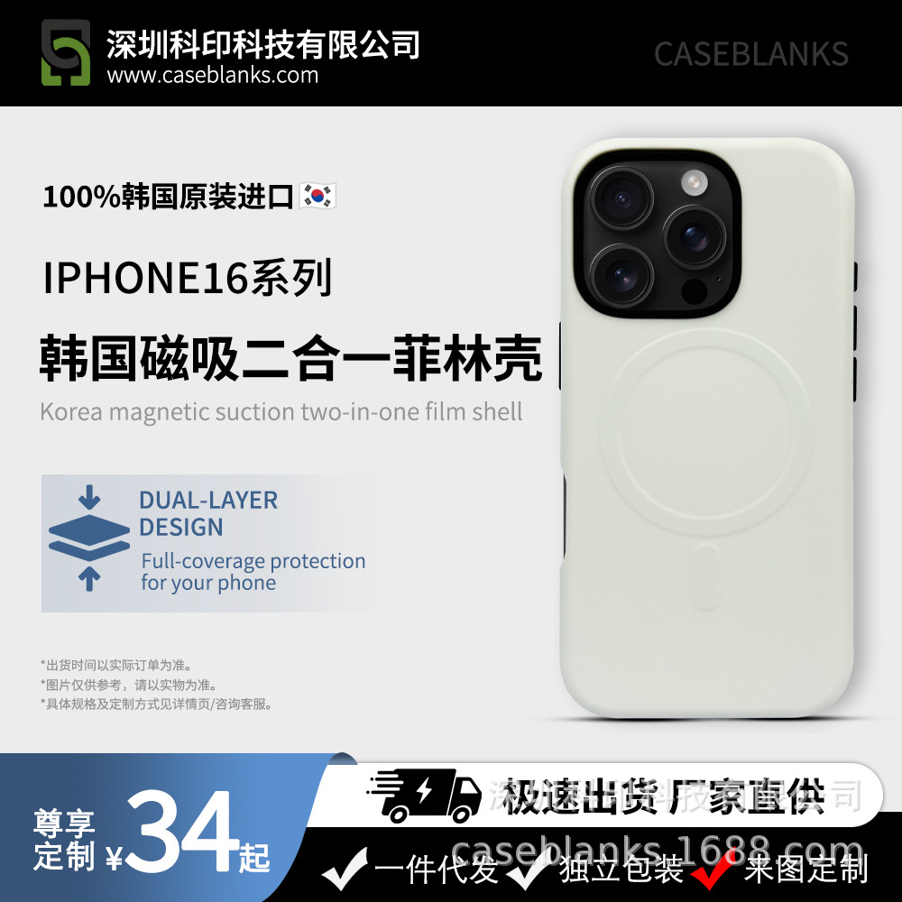 韩国进口原壳圆边磁吸二合一菲林壳全包苹果手机壳适用于iphone16