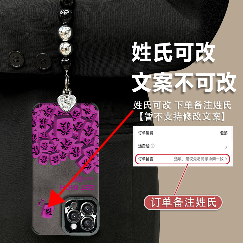 爱心发财姓氏适用苹果13pro手机壳新款苹果15pro/14/12翻毛皮批发