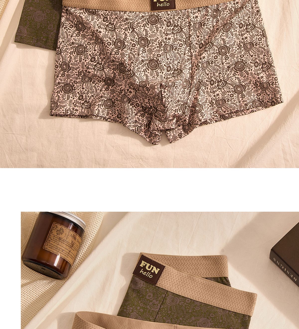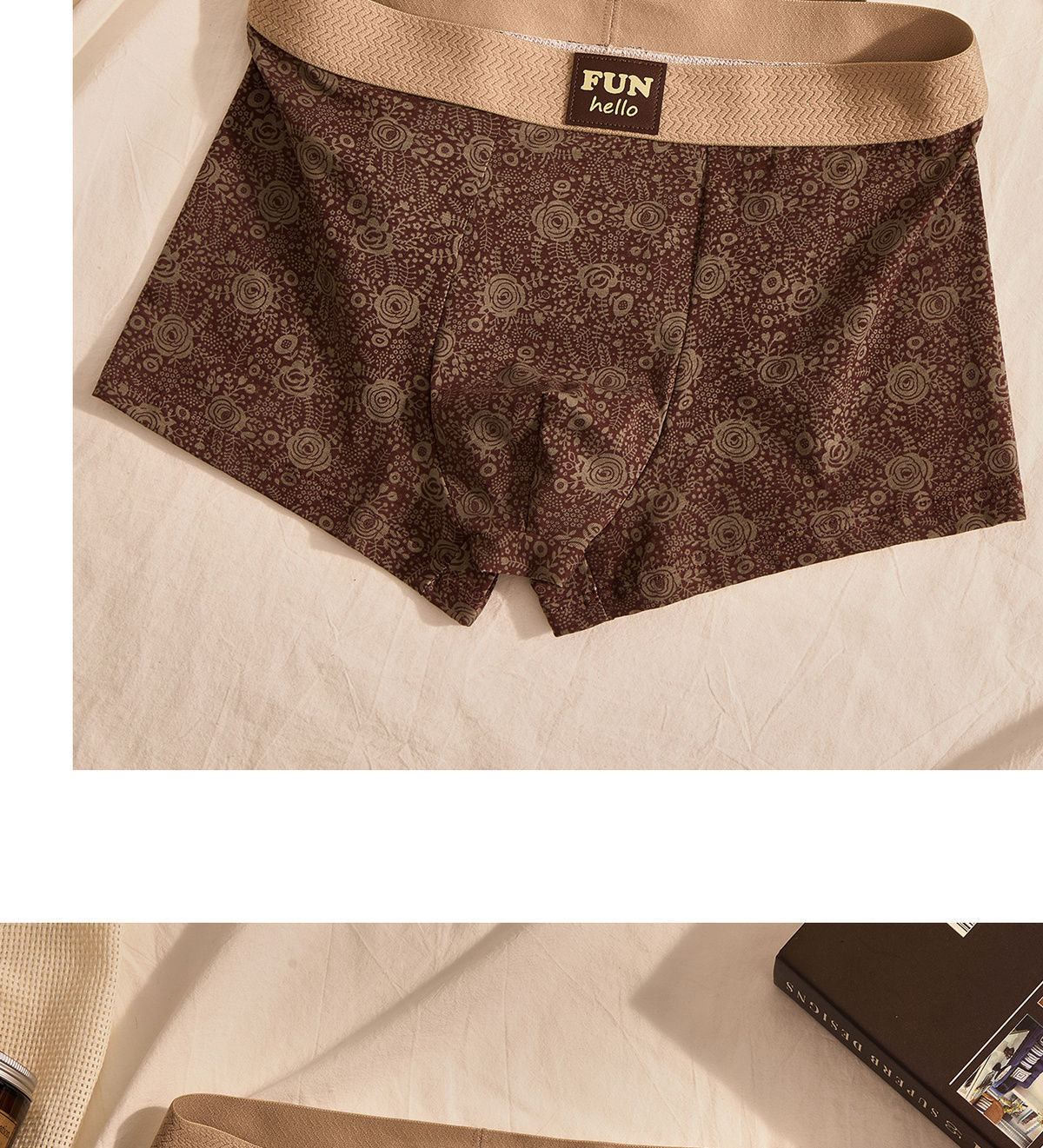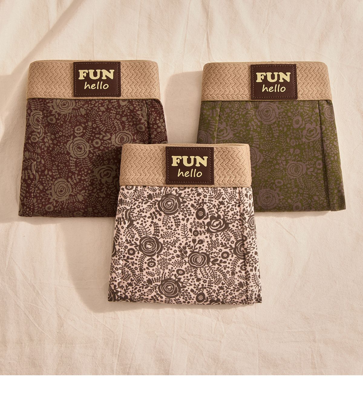 复古旧时光玫瑰印花男士甄选内裤透气柔软平角裤重要休闲男款裤衩