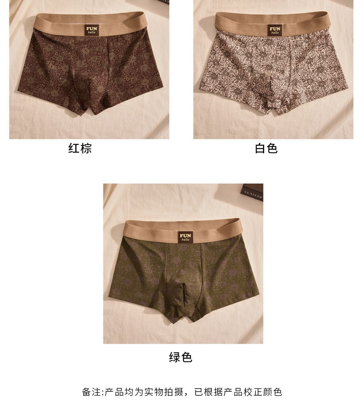 代发古典花印国风男士内裤平角裤亲肤透气四角裤头短裤衩速干男生