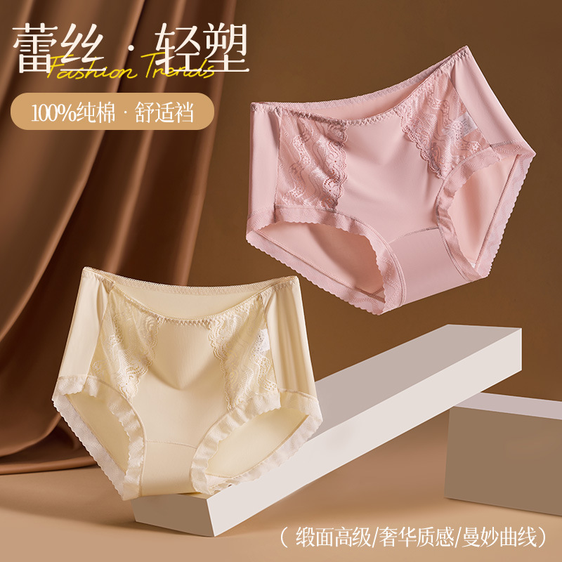 フレンチライトラグジュアリーピュアデューティーレディース下着セクシーレースメッシュ通気性薄型ブリーフミッドウエスト下着女性用