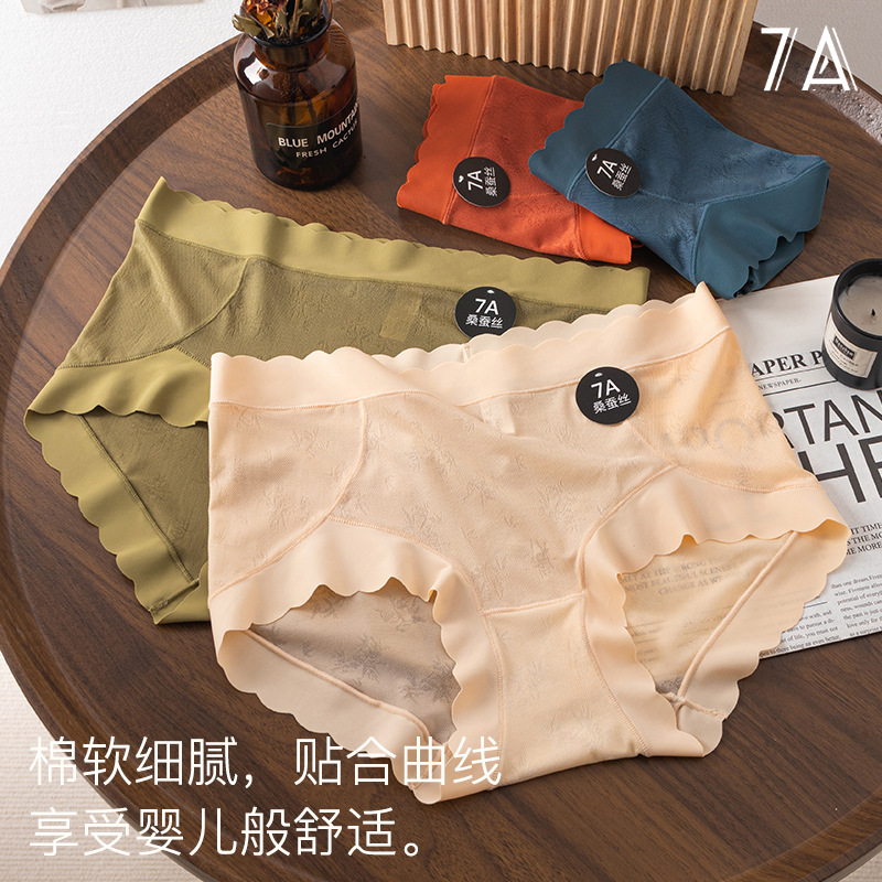 女性の通気性と快適な 7A マルベリーシルクジャカードシンプルなサテンミッドウエスト下着シームレスガールアイスシルク通気性ブリーフ