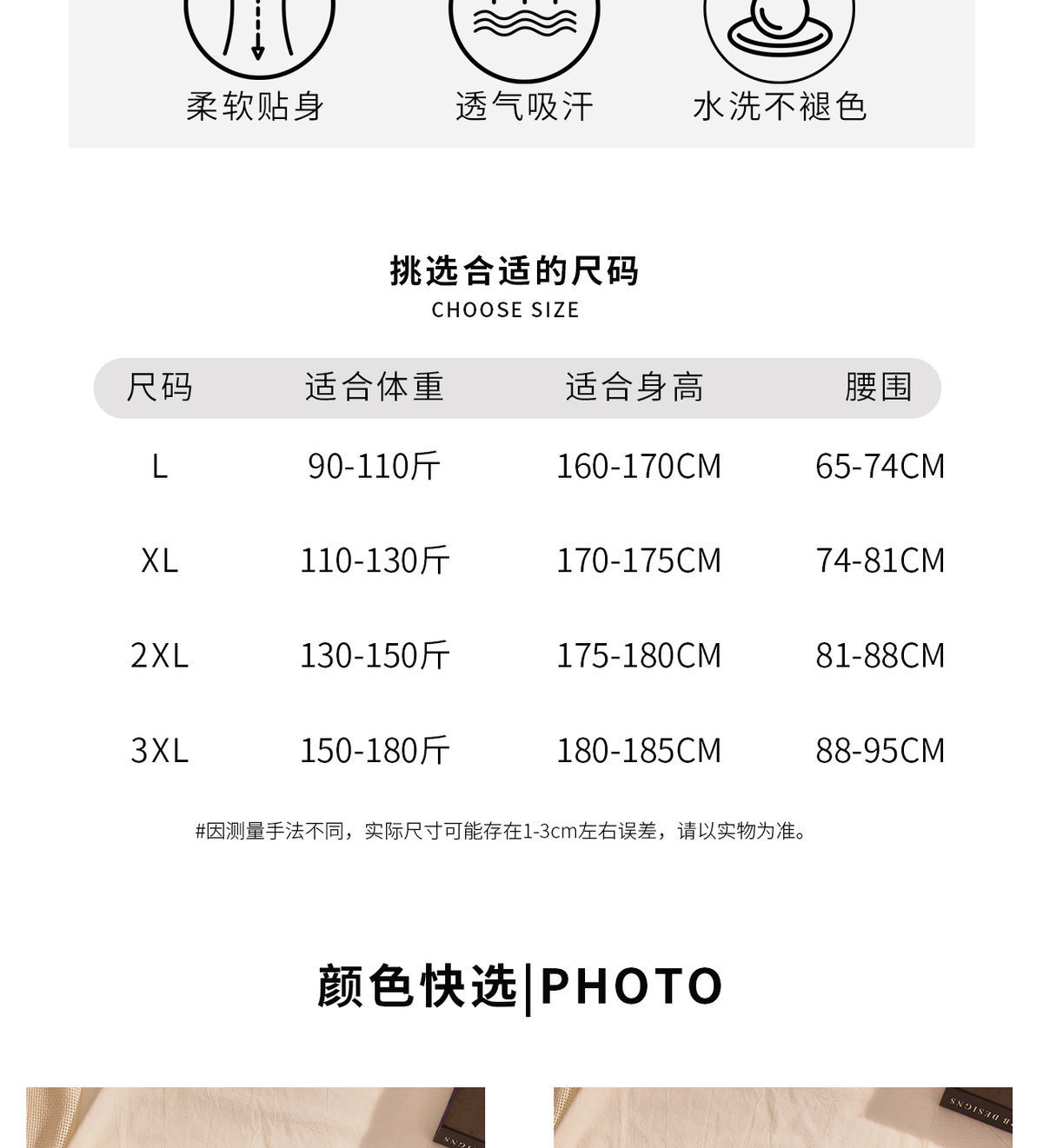 尺码 L(建议90-110斤),XL(建议110-130斤),2XL(建议130-150斤),3XL(建议150-180斤)