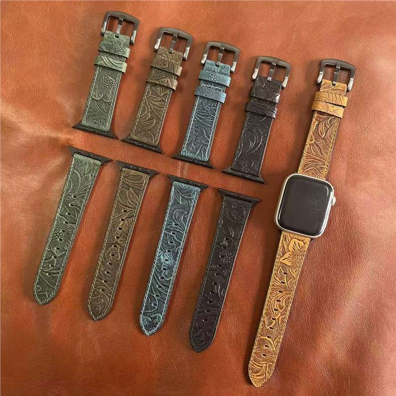 新款复古花孔疯马皮手表表带适用配件iwatch苹果手表AppleWatch