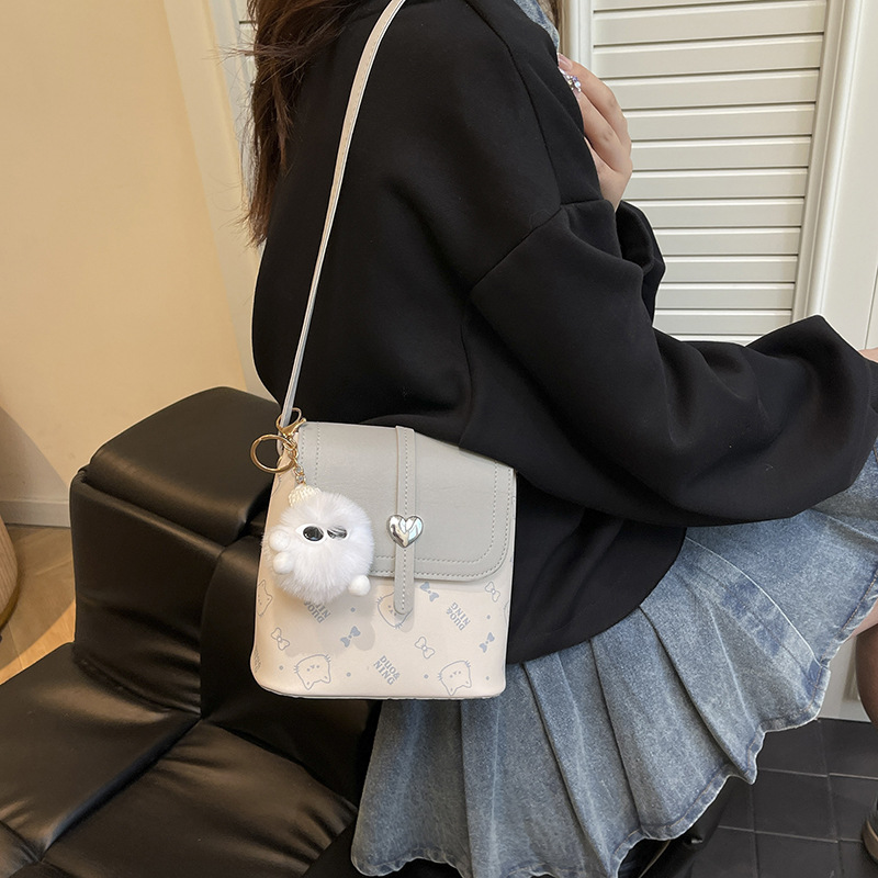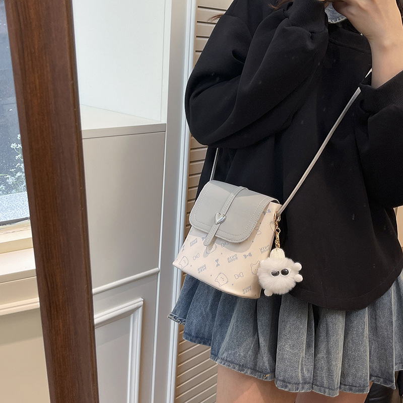 印花包包女包2026新款水桶包女迷你单肩包女小方包送挂件跨境专供
