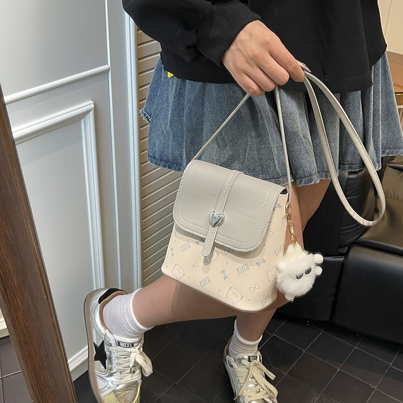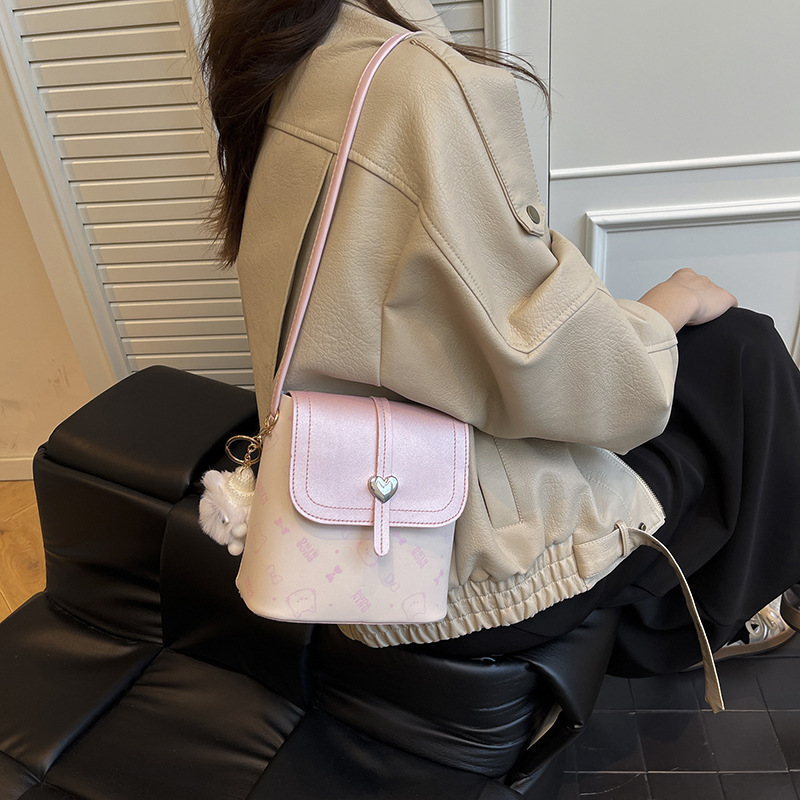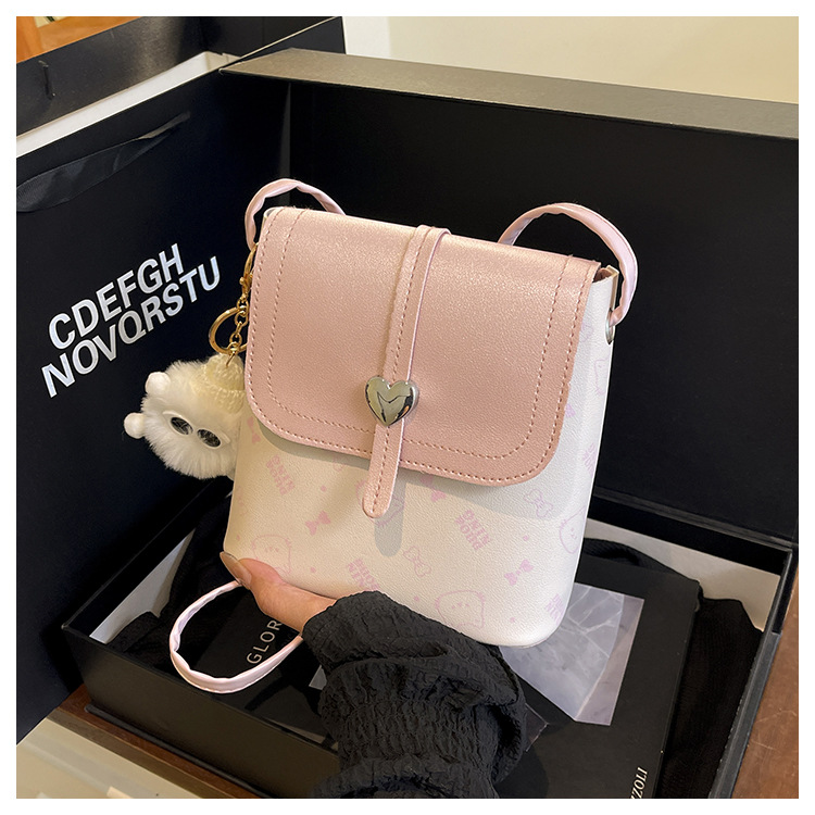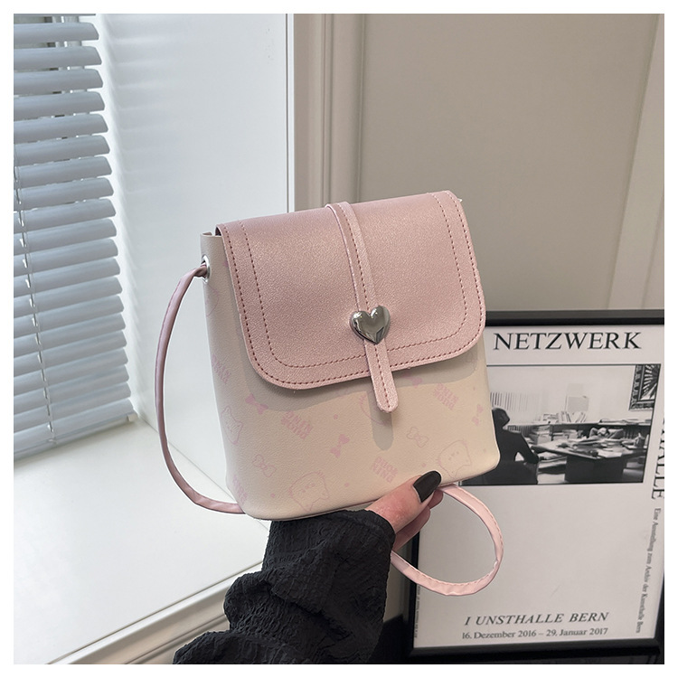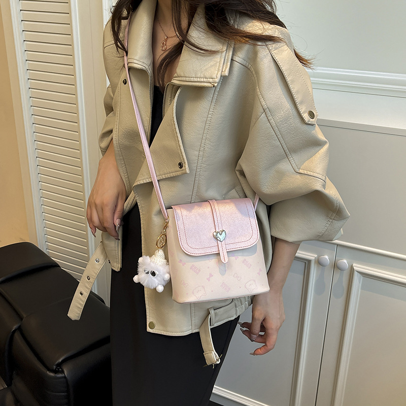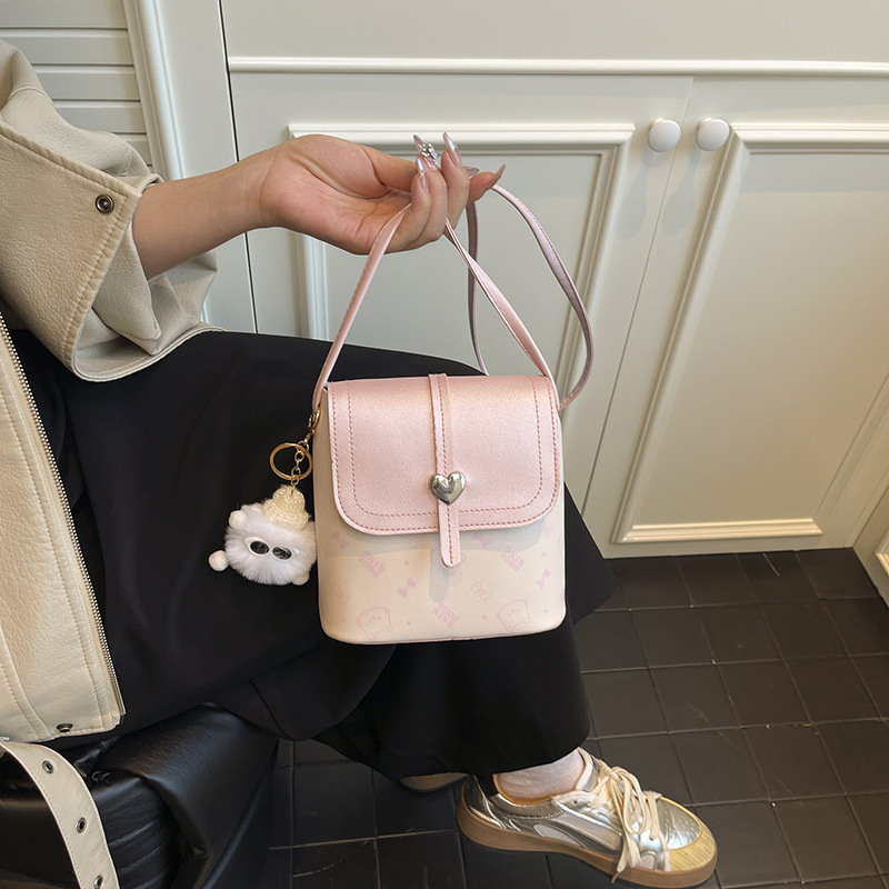 爱心手机包女百搭外出迷你单肩斜挎包水桶包2025新款