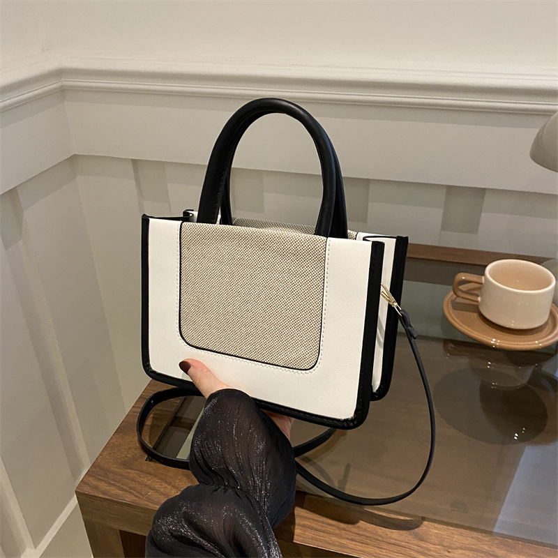 スプライシング大容量シンプルな2025夏新作外国風通勤ポータブルクロスボディショルダーコントラストカラーの女性の小さなスクエアバッグ
