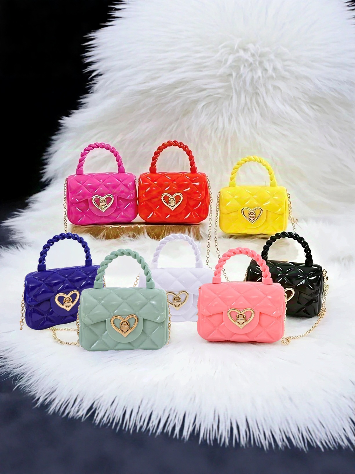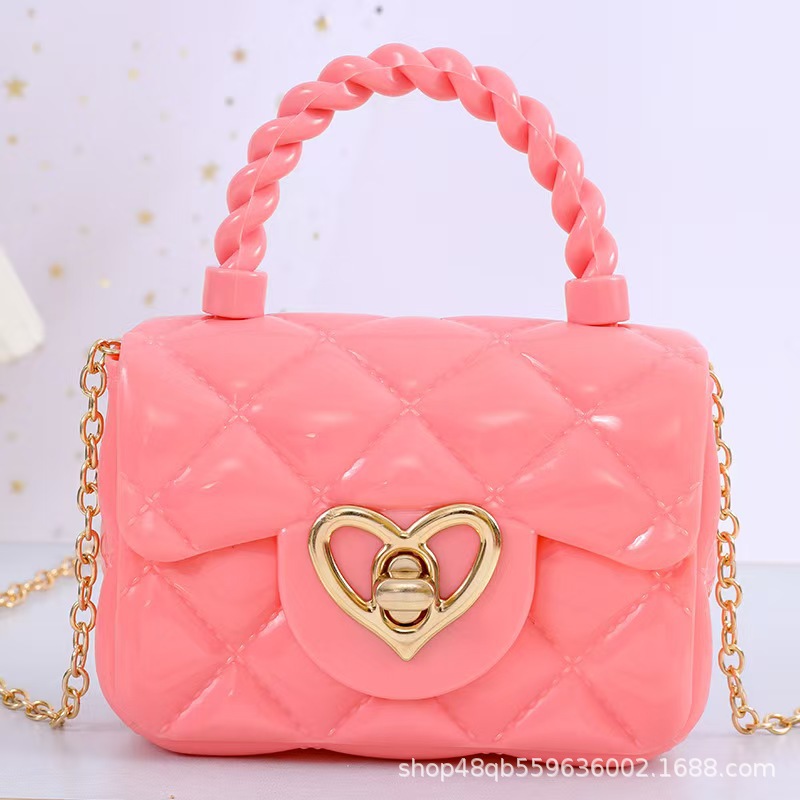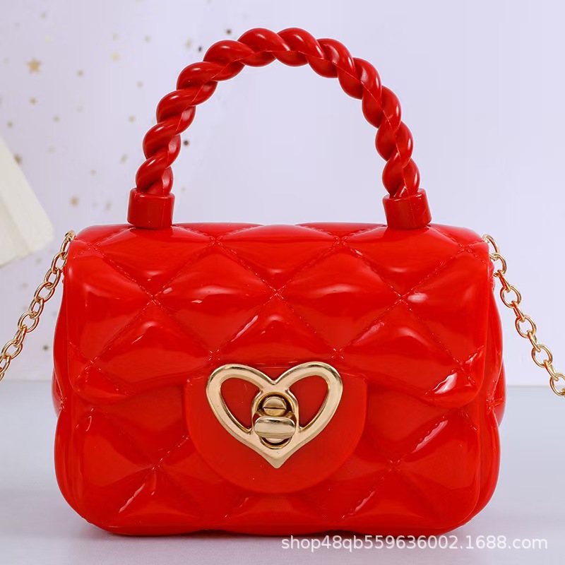 超火彩色果冻包儿童手提包迷你包爱心五金网红女童可爱 小挎包