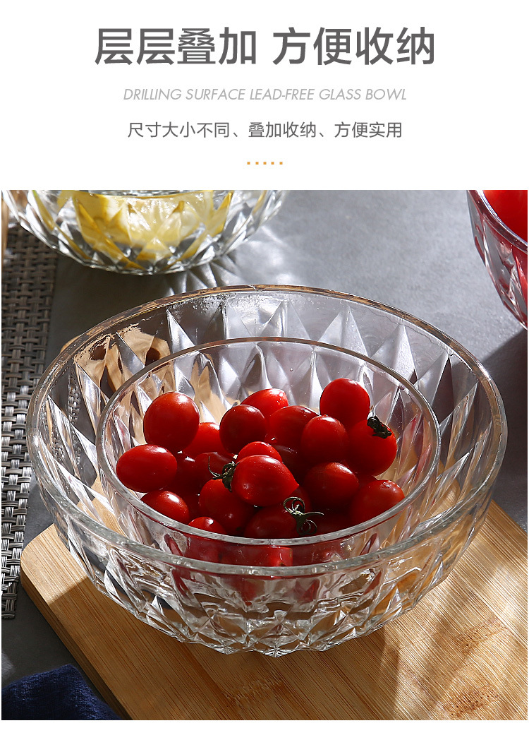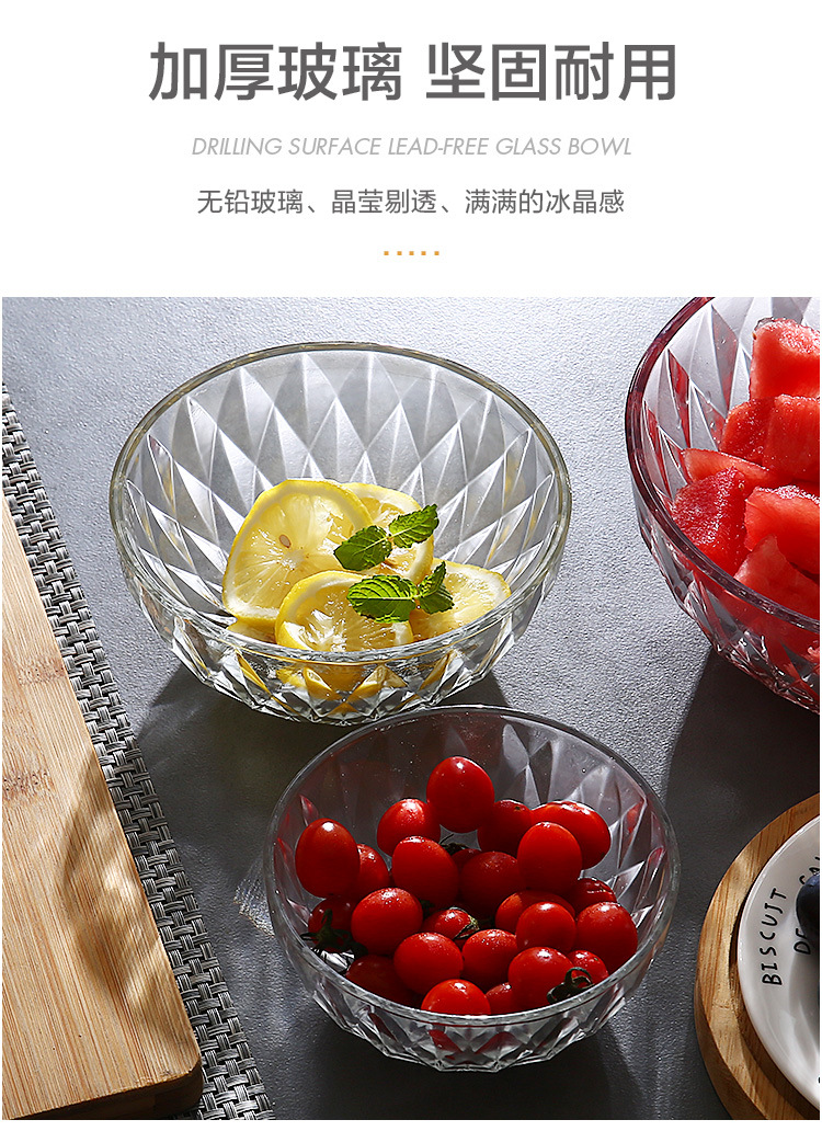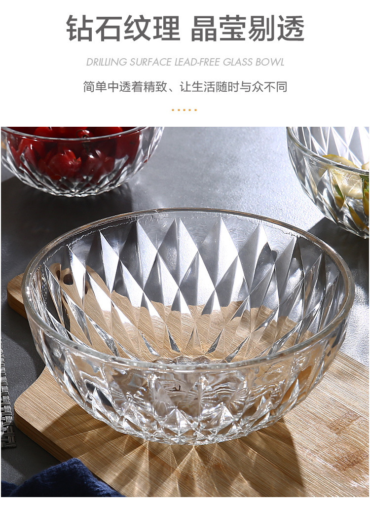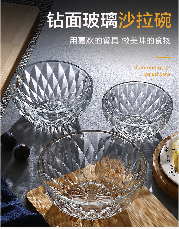クリスタルガラス透明ガラスサラダボウル家庭用耐熱カップラーメンどんぶり大サイズスープボウルデザートボウル厚さスープボウル