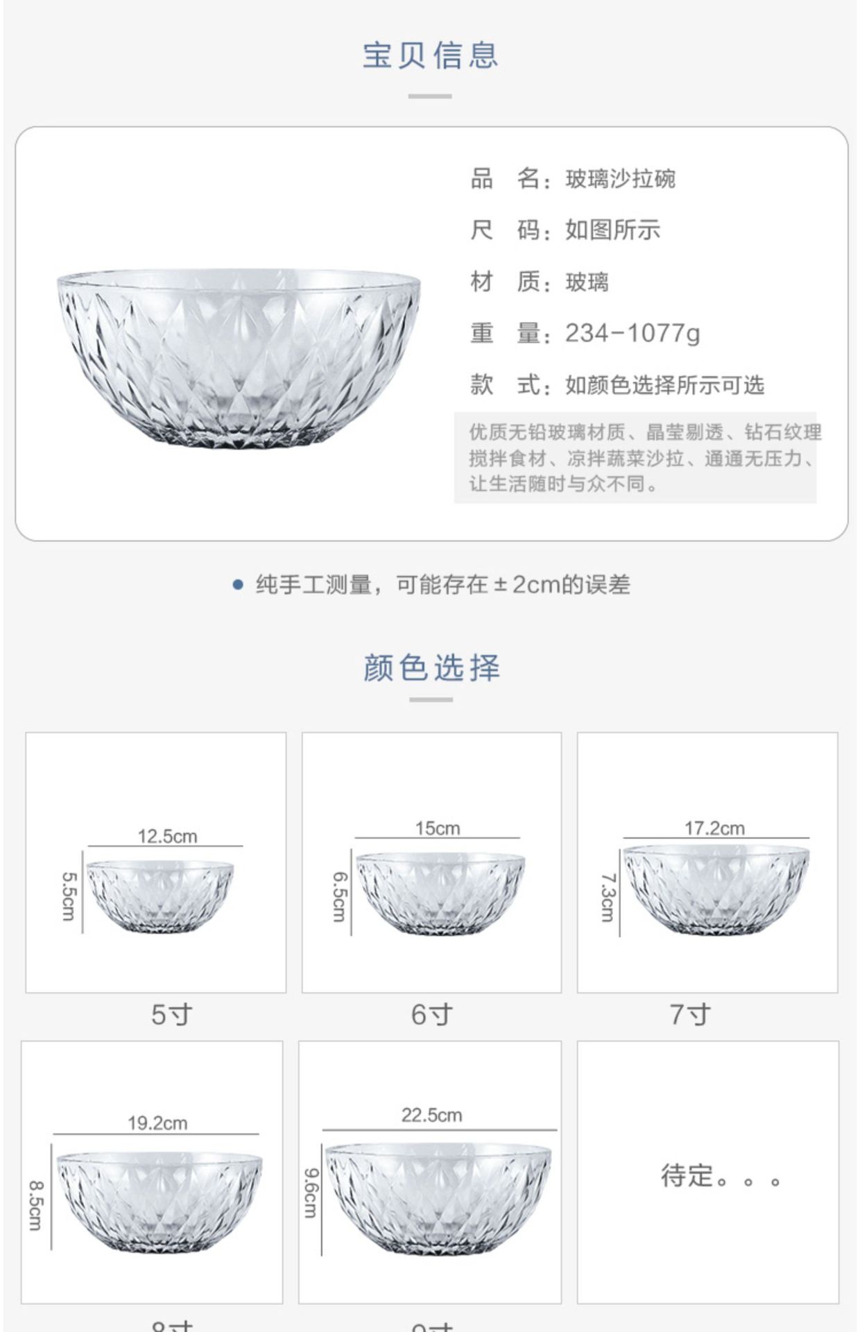 颜色 玻璃碗5寸【1个装】,玻璃碗6寸【1个装】,玻璃碗7寸【1个装】,玻璃碗8寸【1个装】,玻璃碗9寸【1个装】