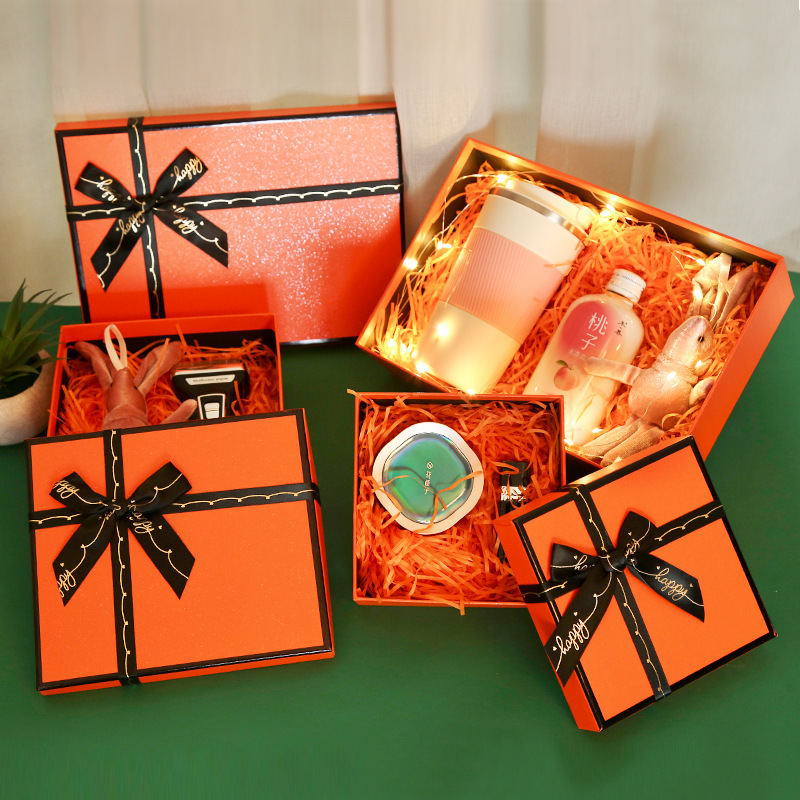 批发橙色礼品盒化妆品口红包装盒天地盖礼物盒子伴手礼蝴蝶结礼盒