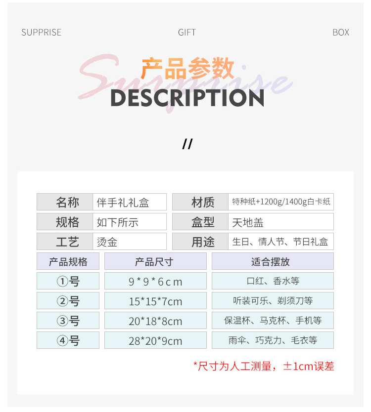 尺寸 15*15*7CM礼盒+礼袋,拉菲草1份,灯