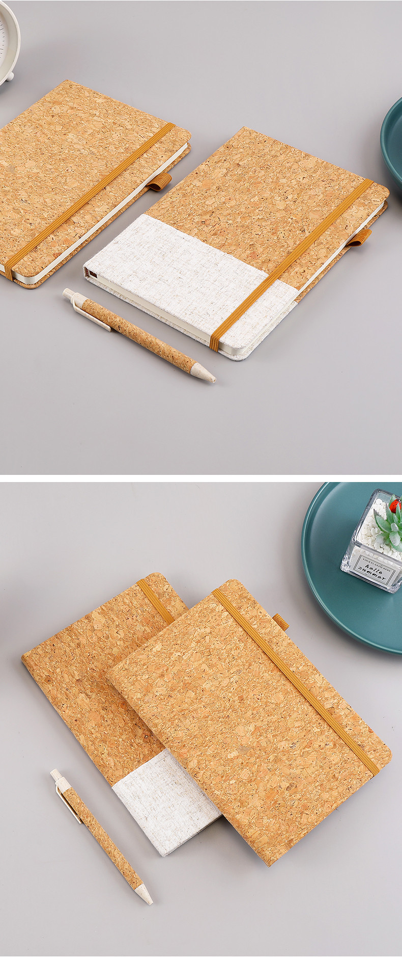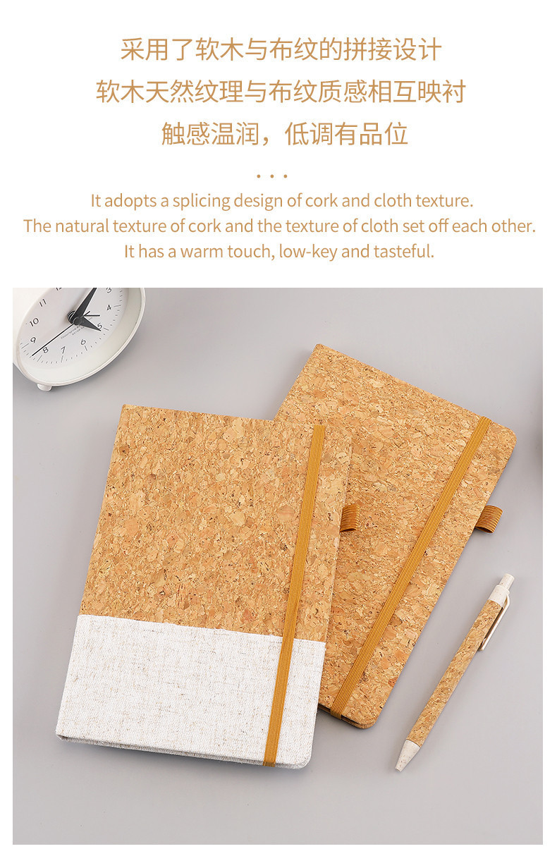 跨境商务环保软木绑带笔记本礼盒套装a5麦秸秆拼接棉麻布记事本子
