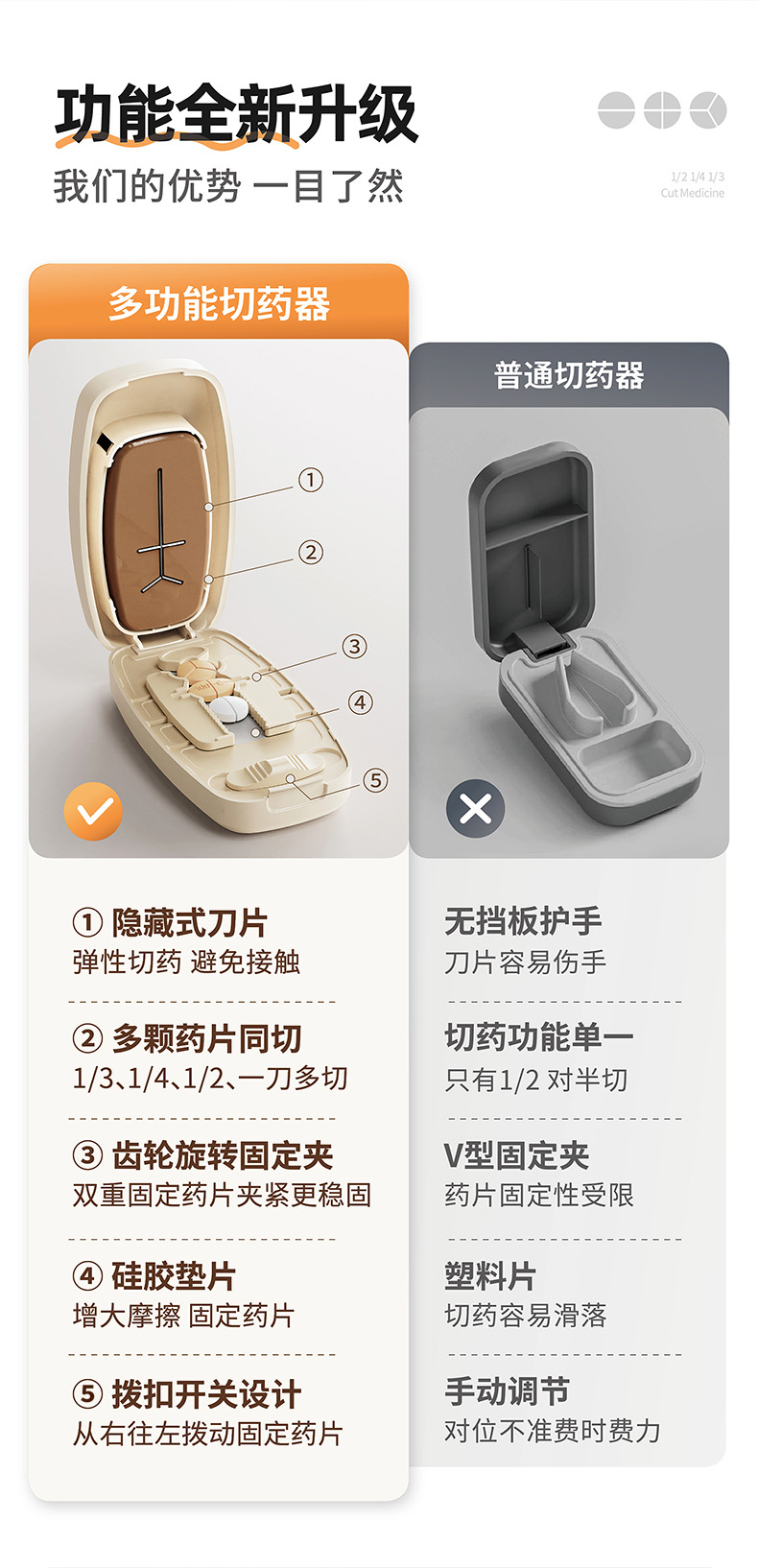 按钮防切手多巴胺切药器分药器精准切药一分二切药片便携分装药盒