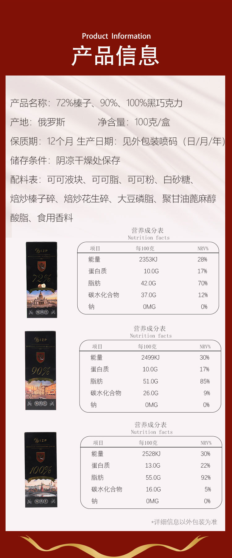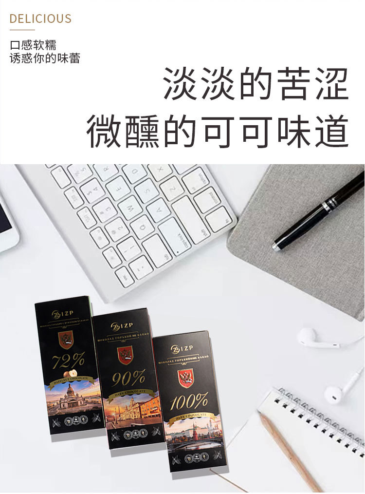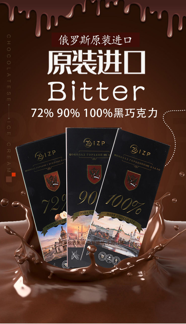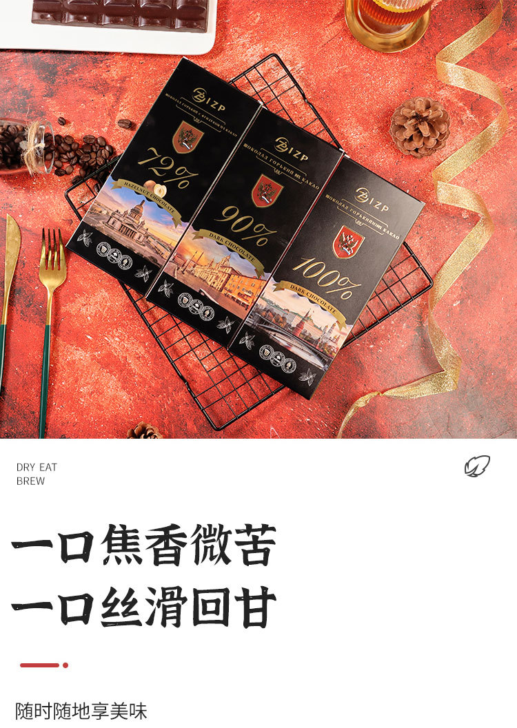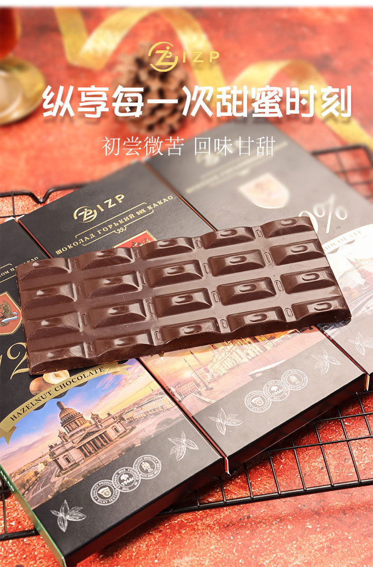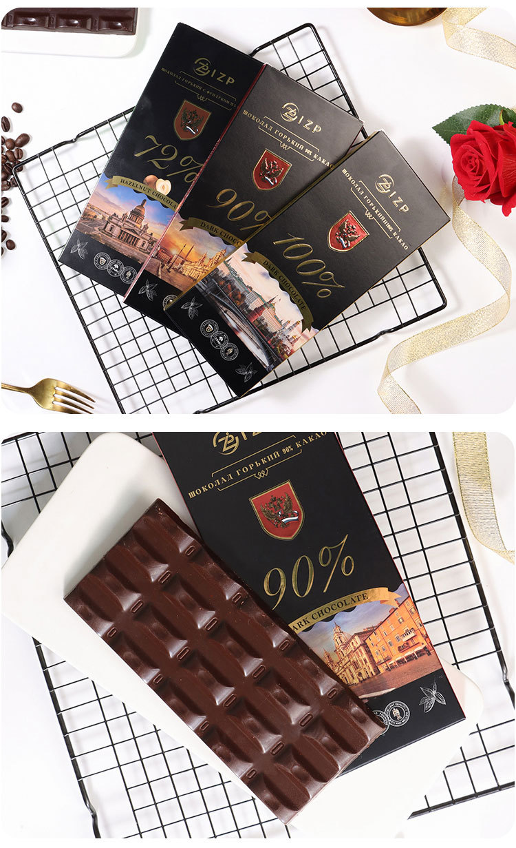 俄罗斯原装进口IZP牌100%90%72%可可黑巧克力纯可可脂礼盒装苦巧