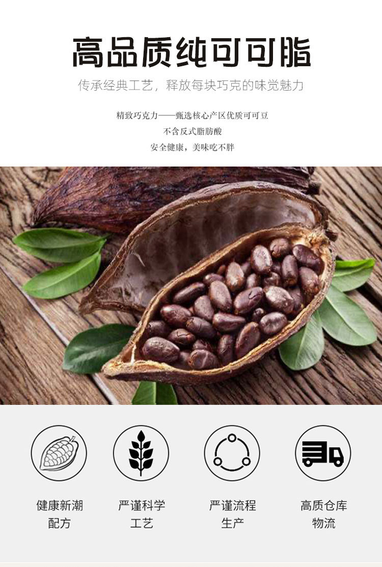 原料与配料 可可液块.可可脂.可可粉.食用盐.大豆磷脂.食用香精香料等