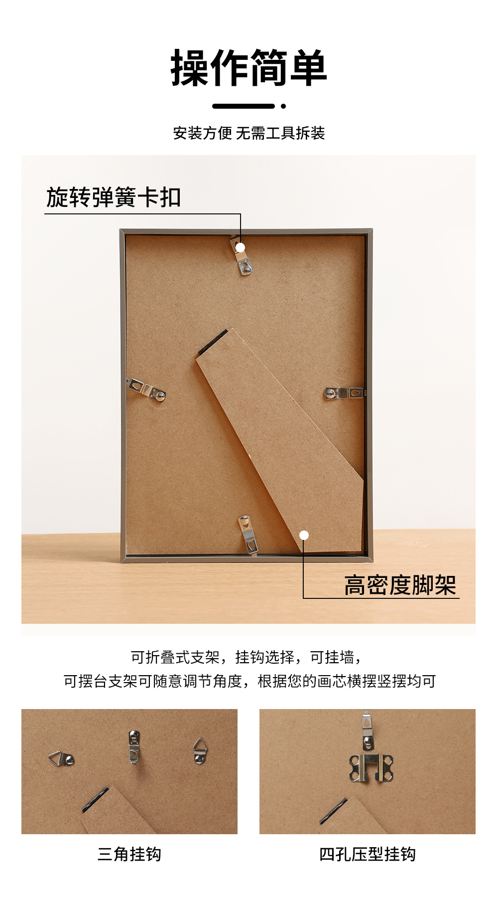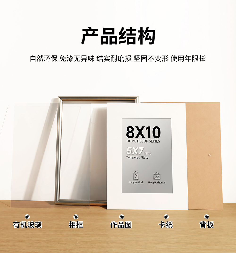 内框尺寸 5x7"(照片12.7x17.8cm)可摆可挂,8x10"(照片20.3x25.4cm)可摆可挂,A4(照片21x29.7cm)可摆可挂,11x14"(照片27.9x35.6cm)可挂