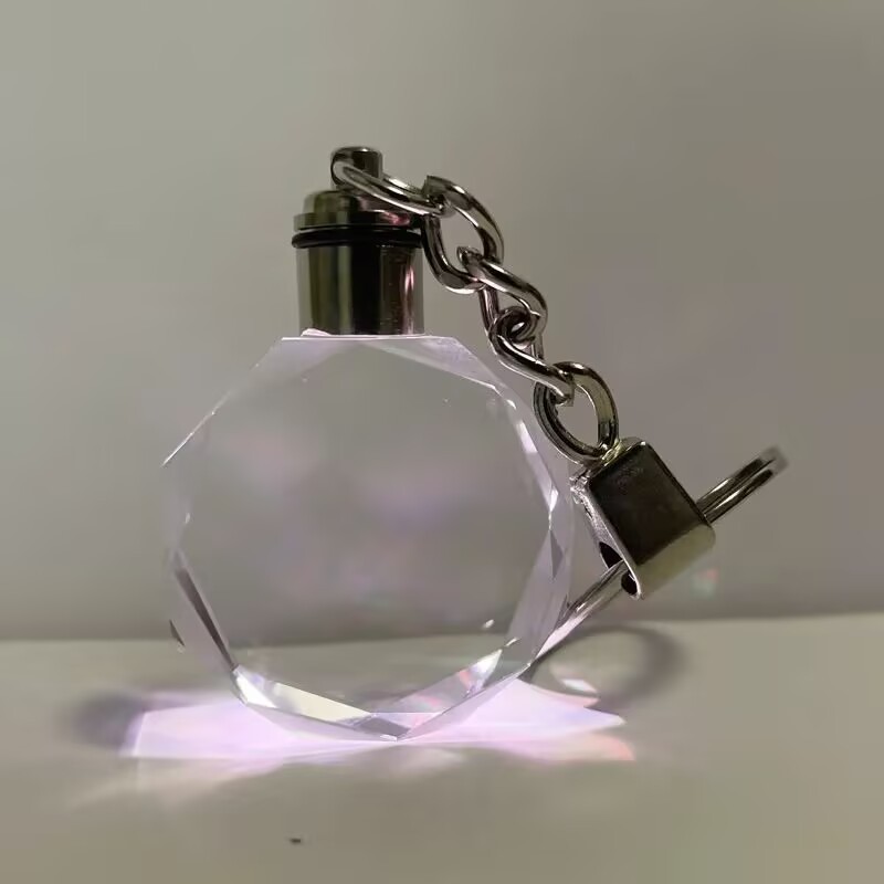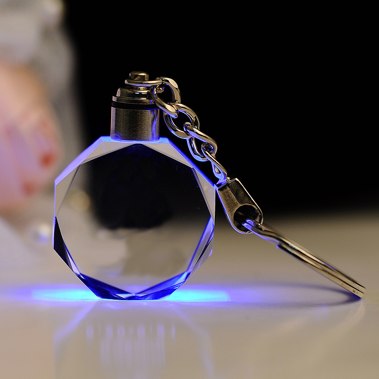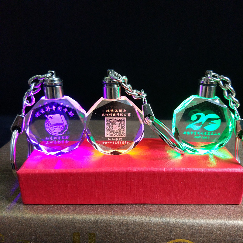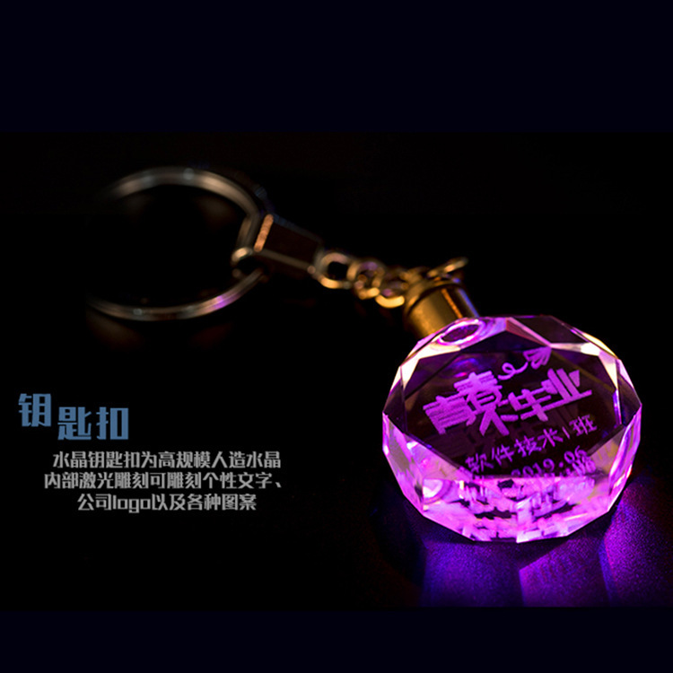 Led七色発光水晶キーホルダーレーザー内彫刻logoパーティープロモーションプレゼント卒業シーズン記念品