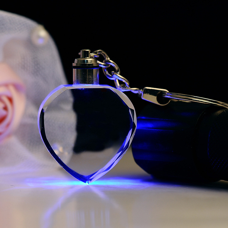 【クリスタルキーホルダー】プレゼントロゴハート型クリスタルキーホルダーカラー発光記念ギフトキーペンダント