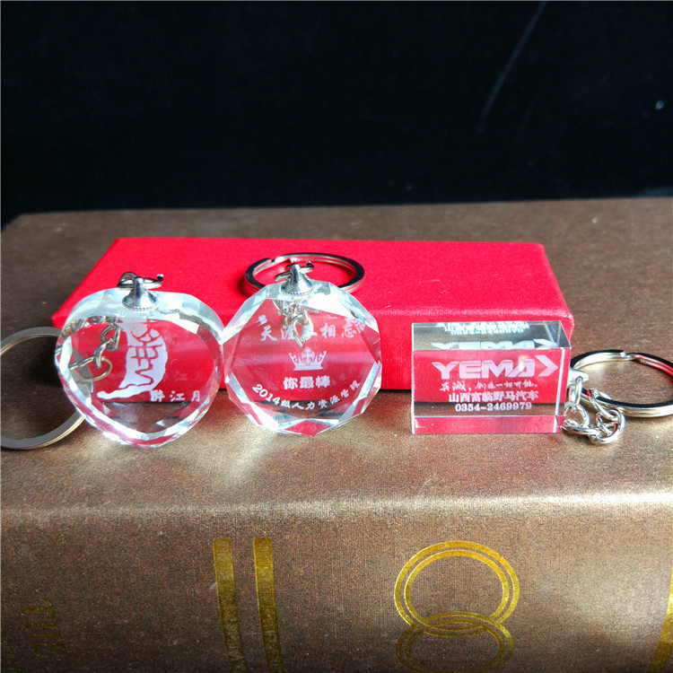 跨境批发水晶内雕钥匙扣白胚影像制作LOGO促销小礼品水晶挂件