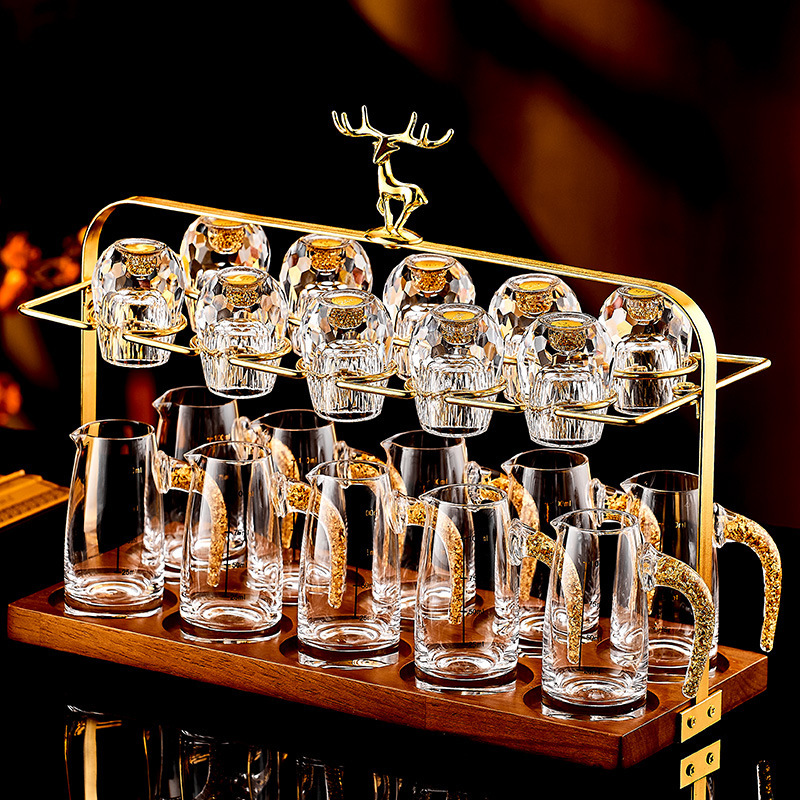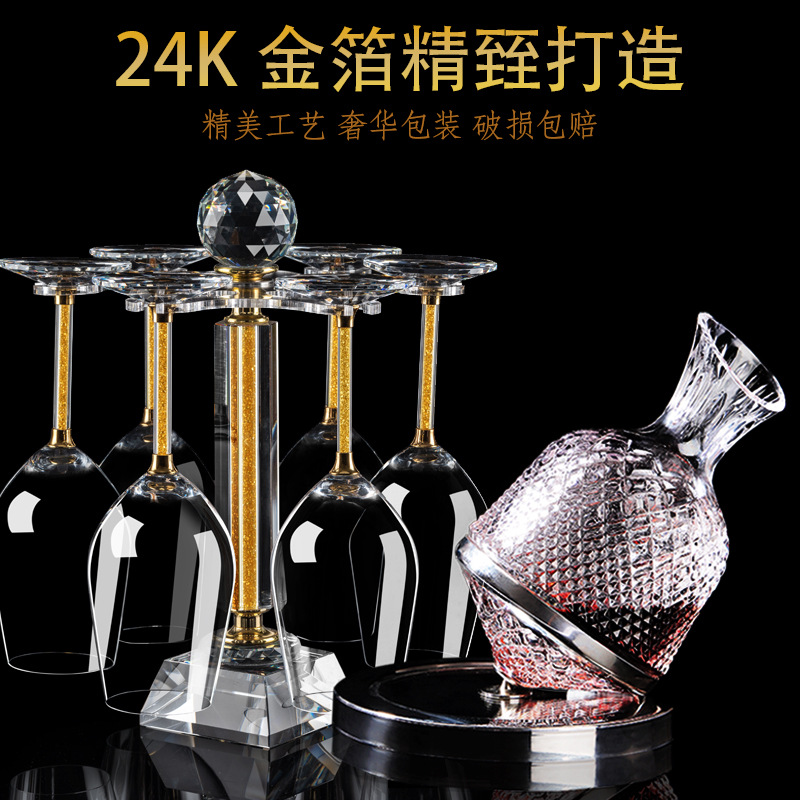 ヨーロッパ式の軽い豪華な24k金箔のワイングラスのセットの家庭用水晶の高足の杯の回転のデキャンタの杯の棚のセット