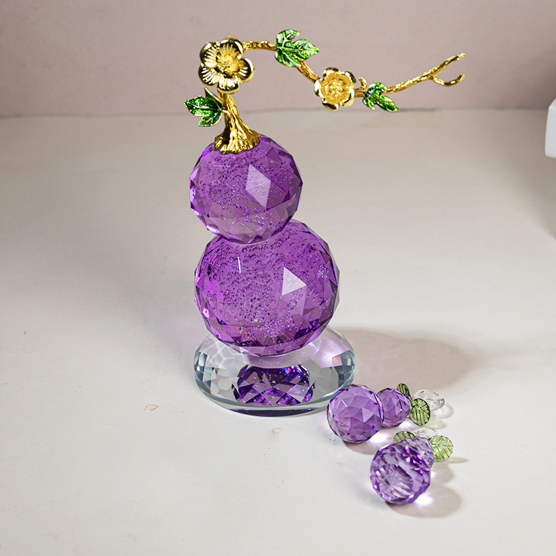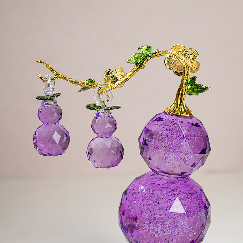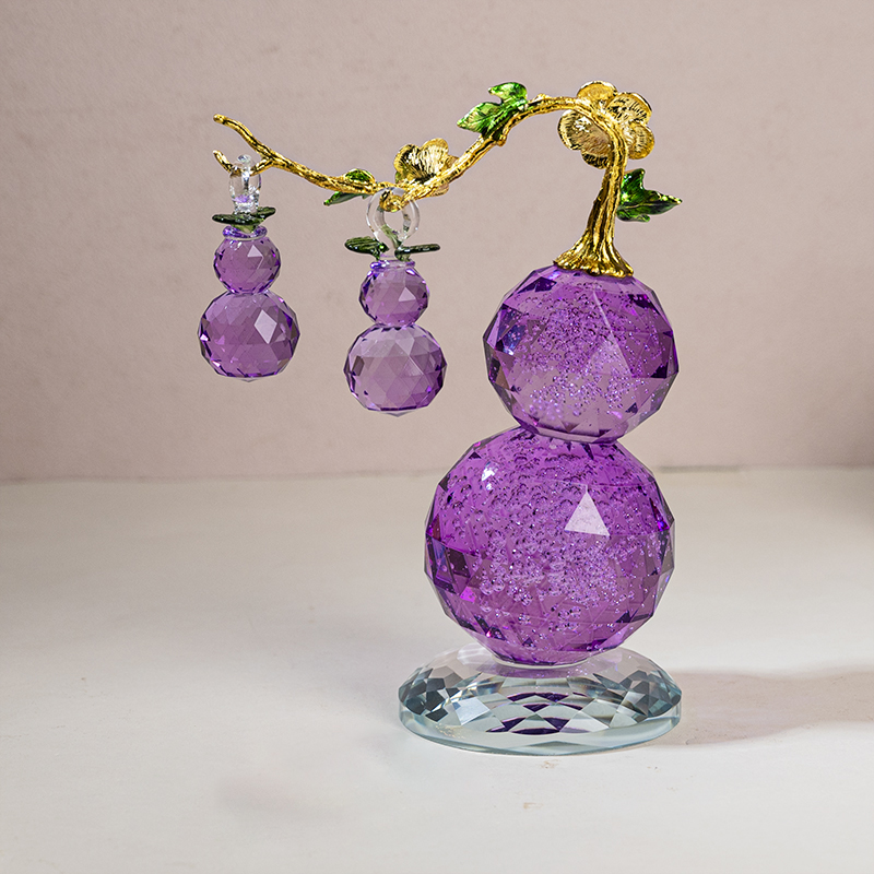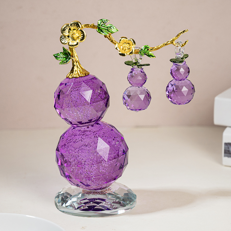 新款梦幻气泡紫色k9水晶葫芦摆件紫气东来客厅电视柜书柜摆件