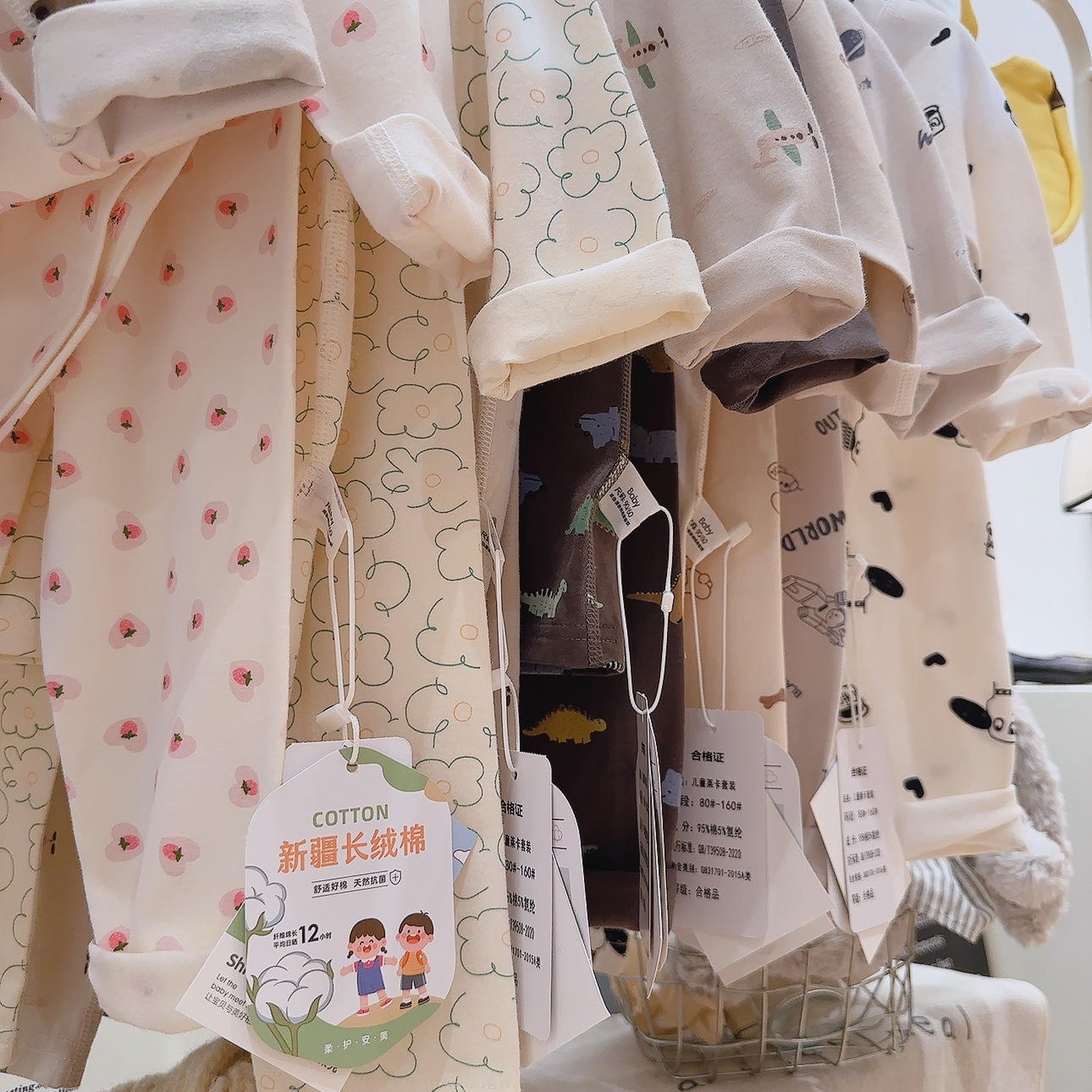 ウール混紡子供用綿100%ノンボーン秋冬長袖男の子女の子用漫画柄下着2点セット漫画柄保温