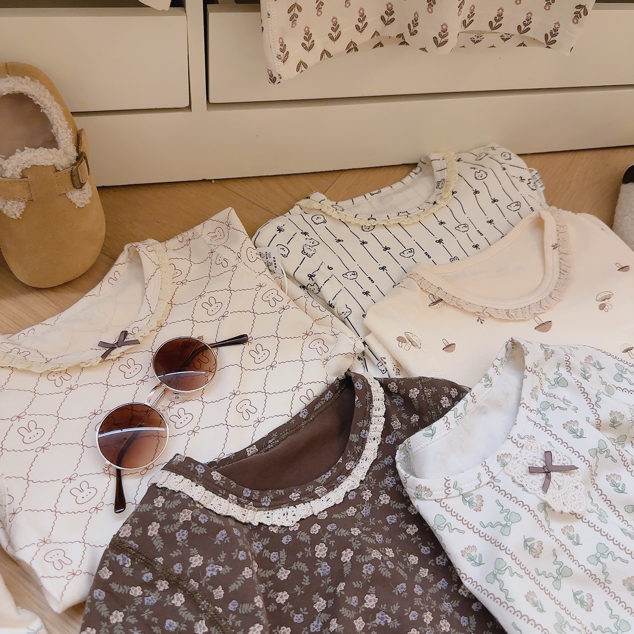 子供用春秋女児漫画柄パジャマ、小さな女の子用ライクラ素材のノンボーン丸首ホームウェアセット、ベビー用秋服上下セット