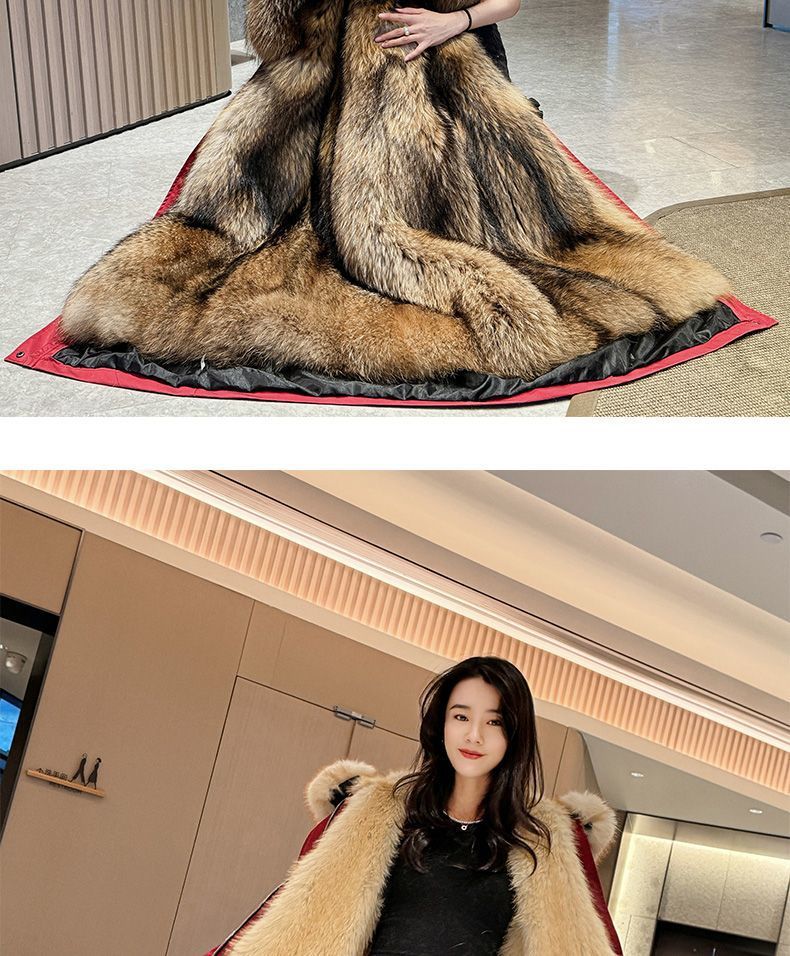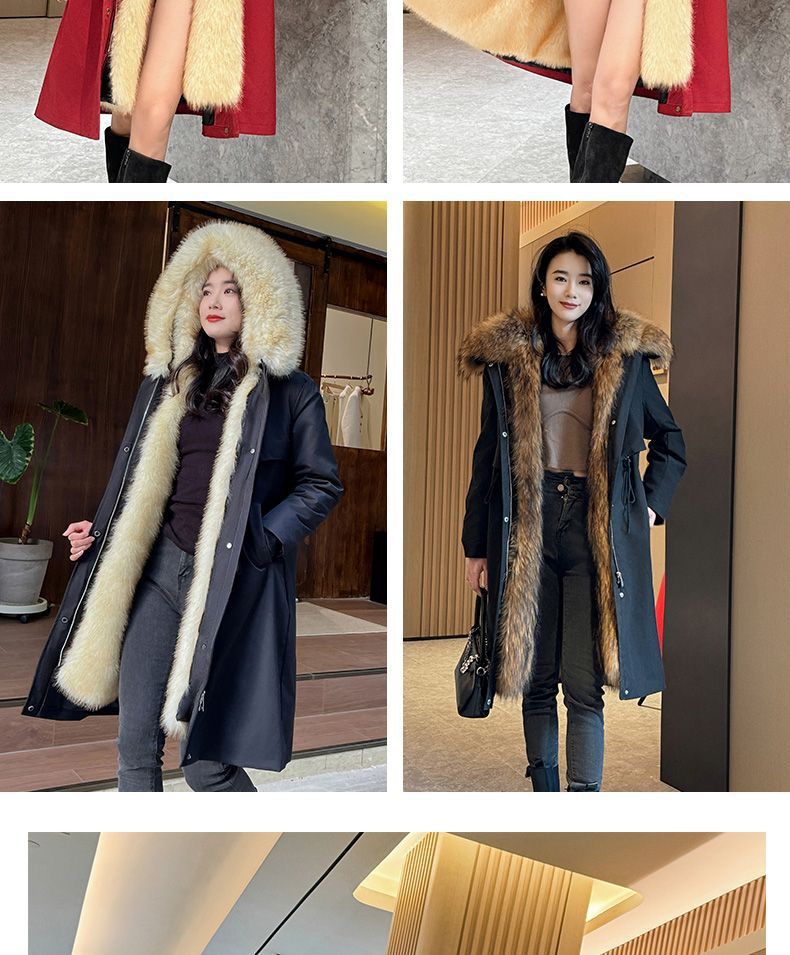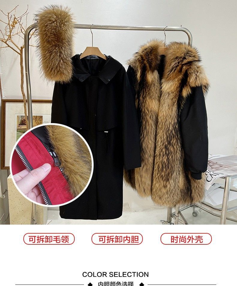 冬の新型パーカーの女性の中の長さはタヌキの毛のようです。
