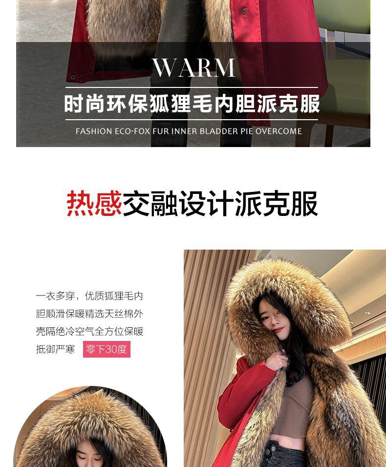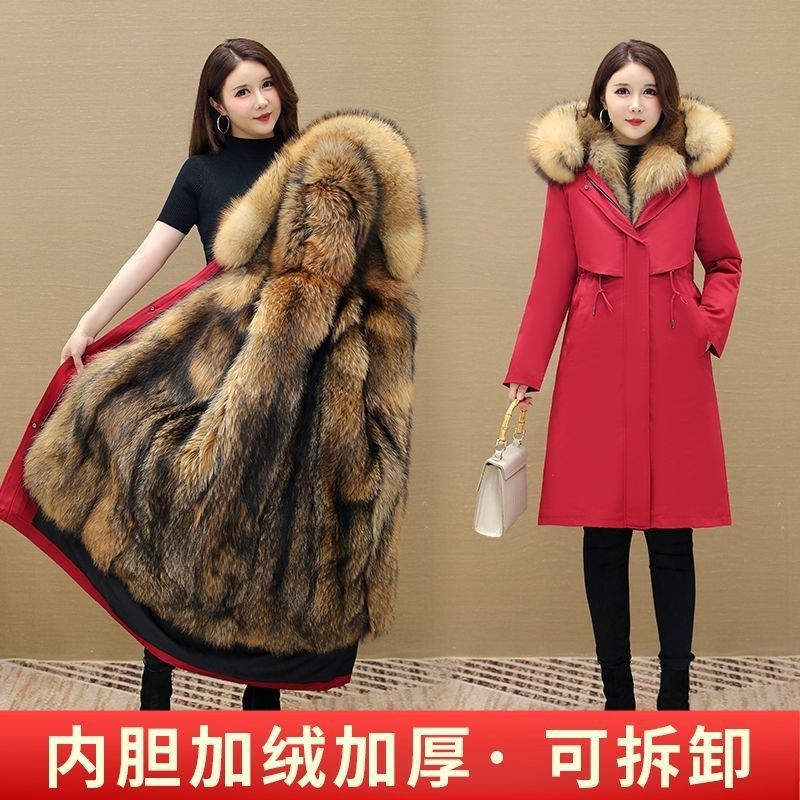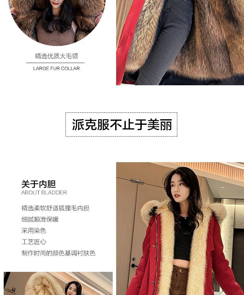 派克服2025新皮毛一体冬季长款仿狐狸内胆可拆卸皮草加厚大衣外套