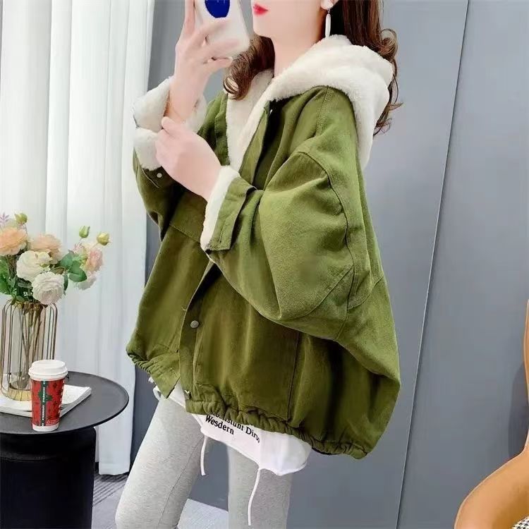 加绒加厚牛仔外套女秋冬新款冬季韩版羊羔绒宽松短款休闲棉衣