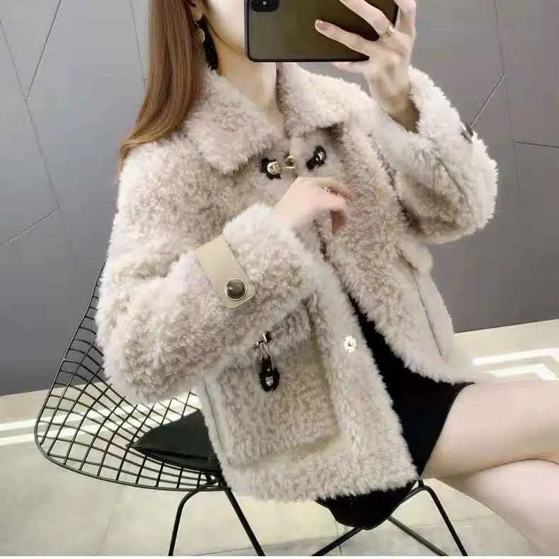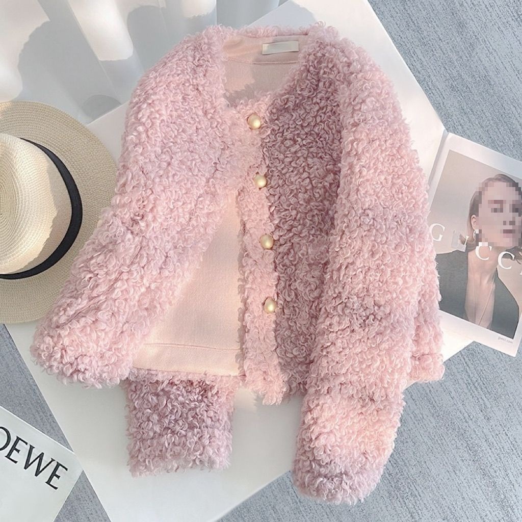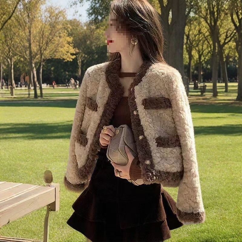 2025 秋と冬の新レトロな小さな香りのラムウールジャケット女性のルーズファーコートショートキルティングぬいぐるみトップ