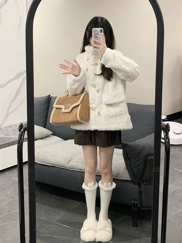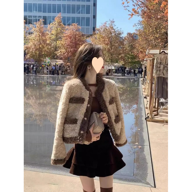 冬季羊羔毛外套女加绒加厚小个子学院风仿皮草上衣小香风毛毛外套