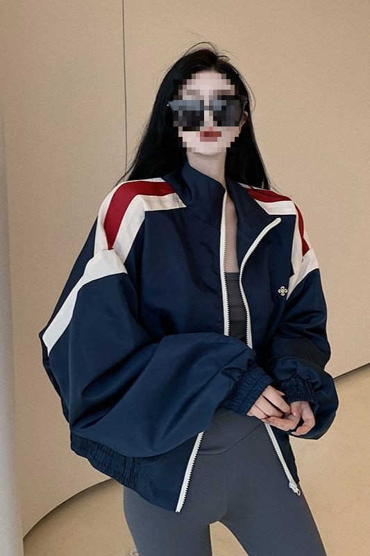 美式棒球服女春秋年新款撞色冲锋衣休闲运动夹克外套上衣