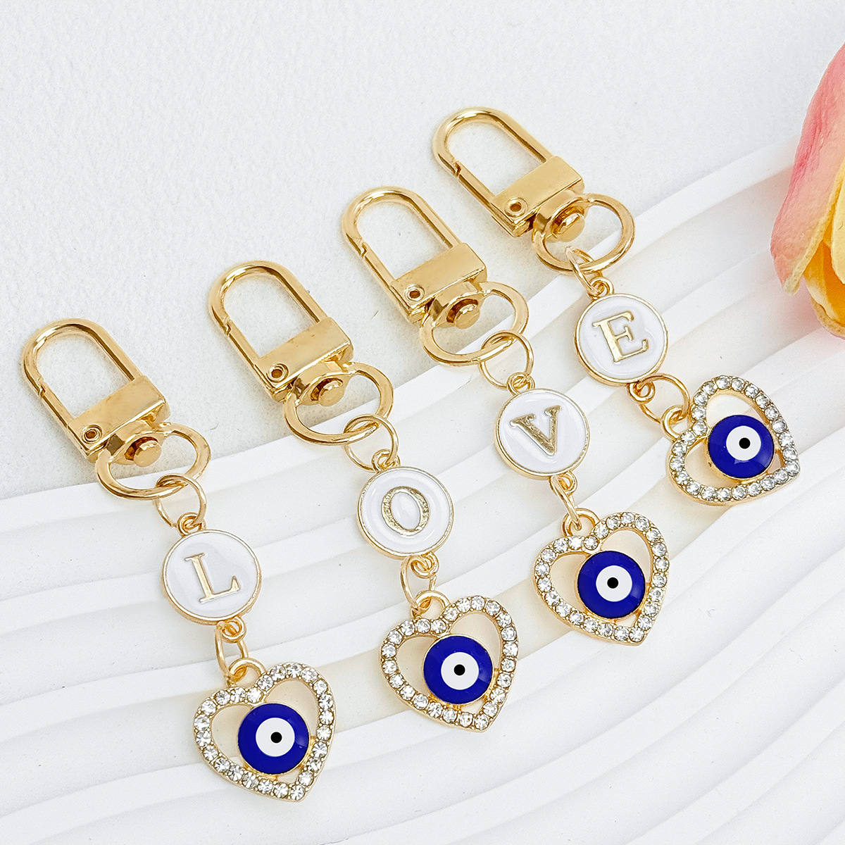 热销跨境 26个字母A-Z姓名满钻爱心恶魔之眼滴油合金钥匙扣挂件包