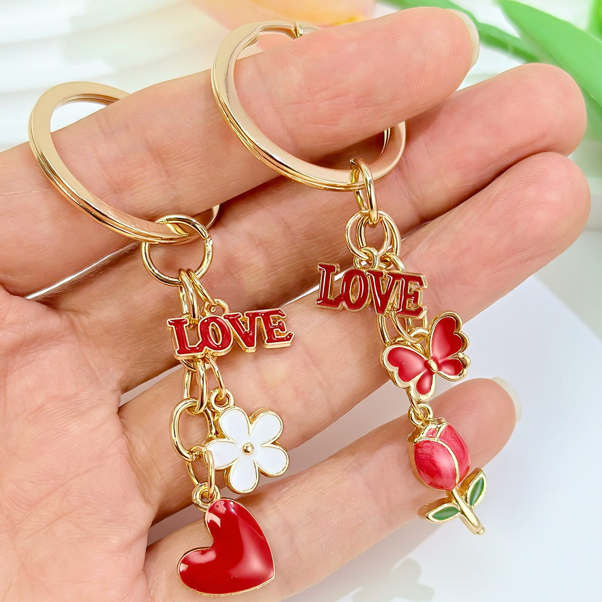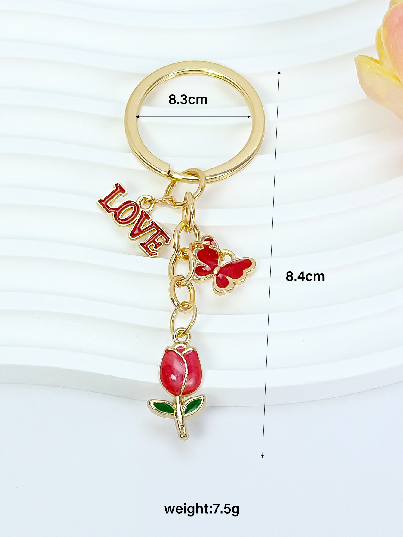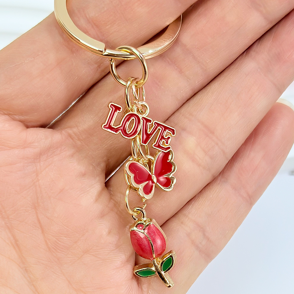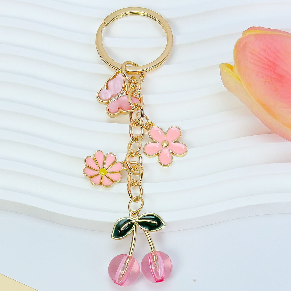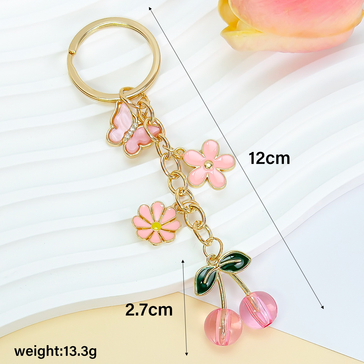 跨境仿真樱桃挂件情人节钥匙扣可爱女生饰品love字母蝴蝶花朵高档