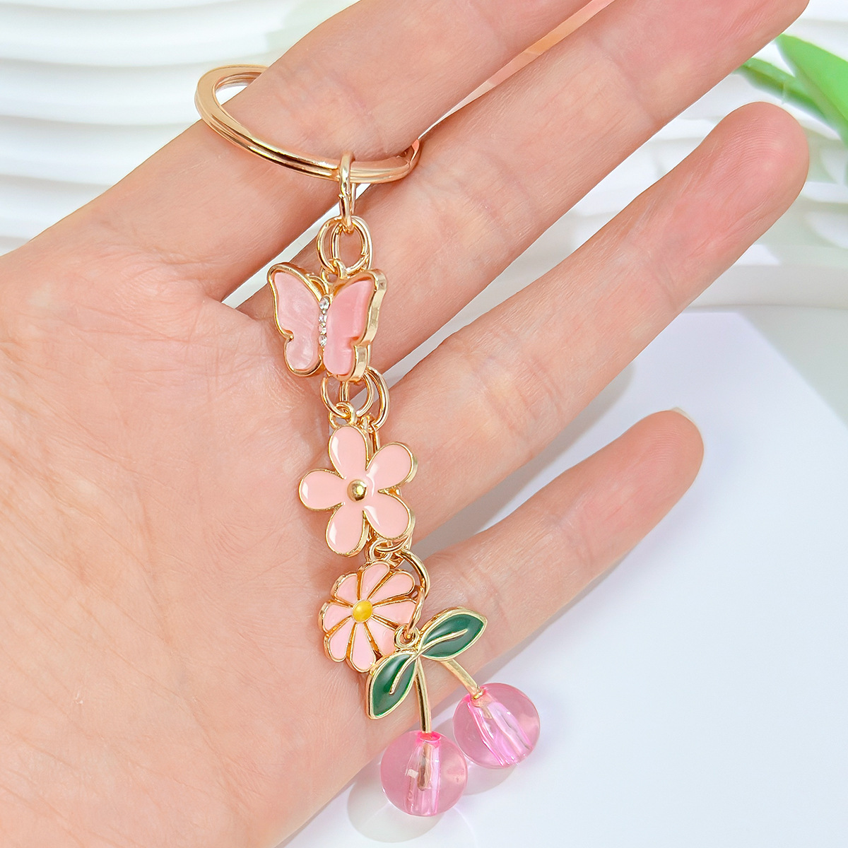 跨境爆款爱心扣蝴蝶樱桃钥匙扣包包挂件水果钥匙链汽车钥匙礼物