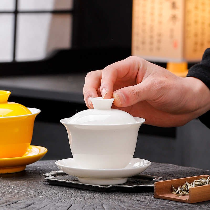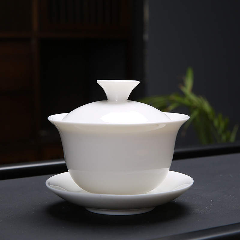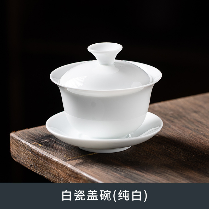 潮汕カンフー茶器純白羊脂玉三才蓋碗の大中小サイズのお茶碗のミニ試茶陶磁器敬茶