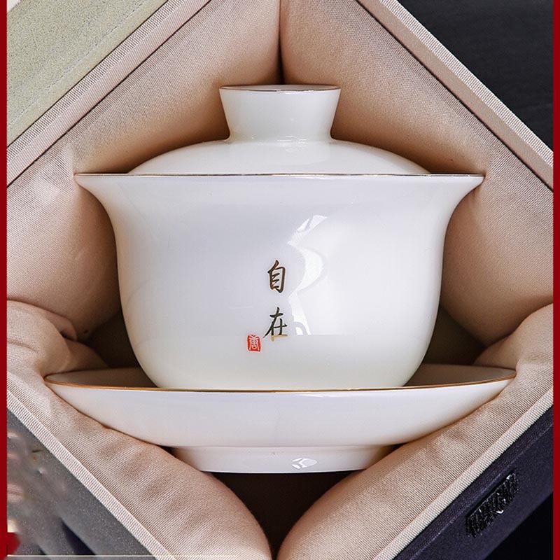 徳化白磁羊脂玉蓋碗茶器セット大サイズ陶磁器三才杯茶碗白オーダーメードlogo企業