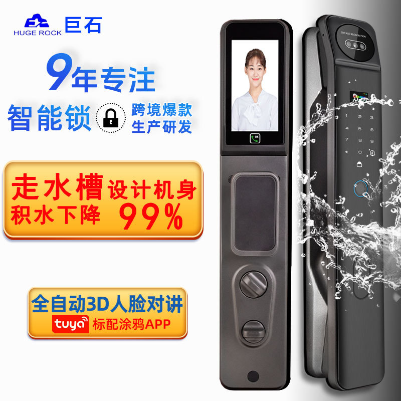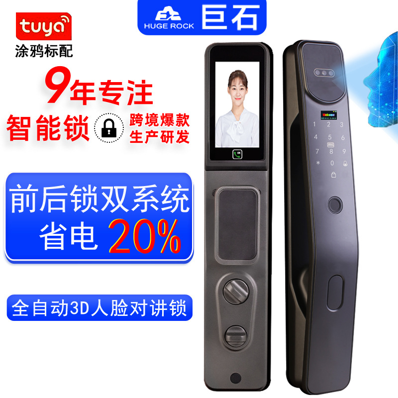 跨境涂鸦智能锁全自动可视猫眼涂鸦指纹锁3d人脸识别智能密码锁