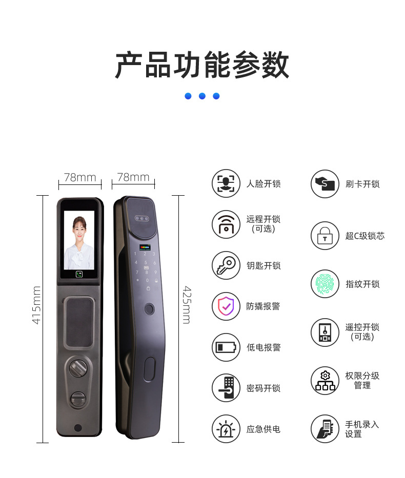 款式 指纹,防水,密码,带钥匙,掌纹,可视猫眼,人脸识别,远程解锁