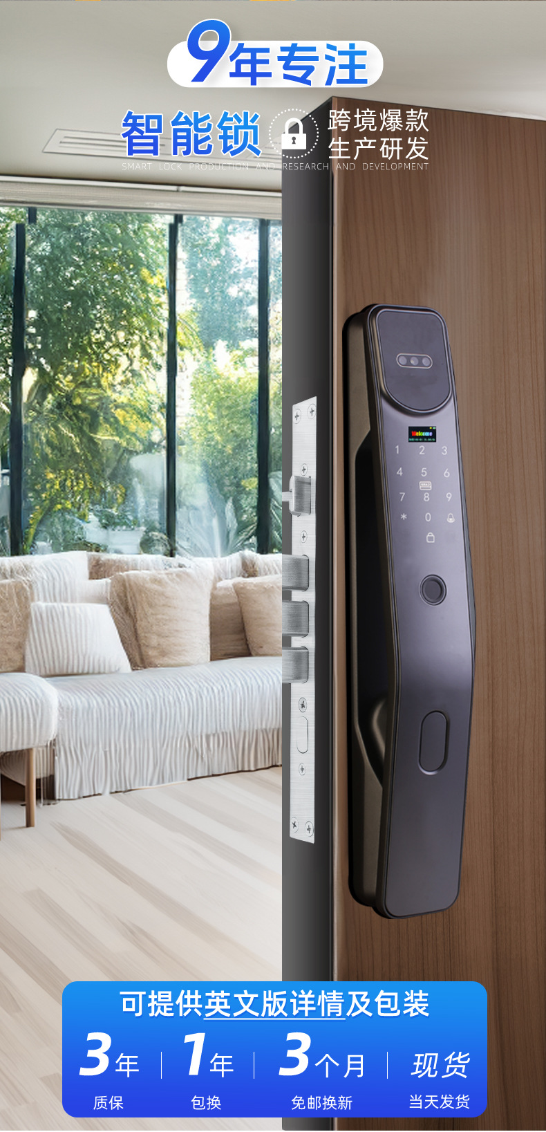 クロスボーダー対応ロシア語対応スマートドアロック木製ドア用顔認証全自動指紋ロック家庭用指紋パスワードロック玄関ドア