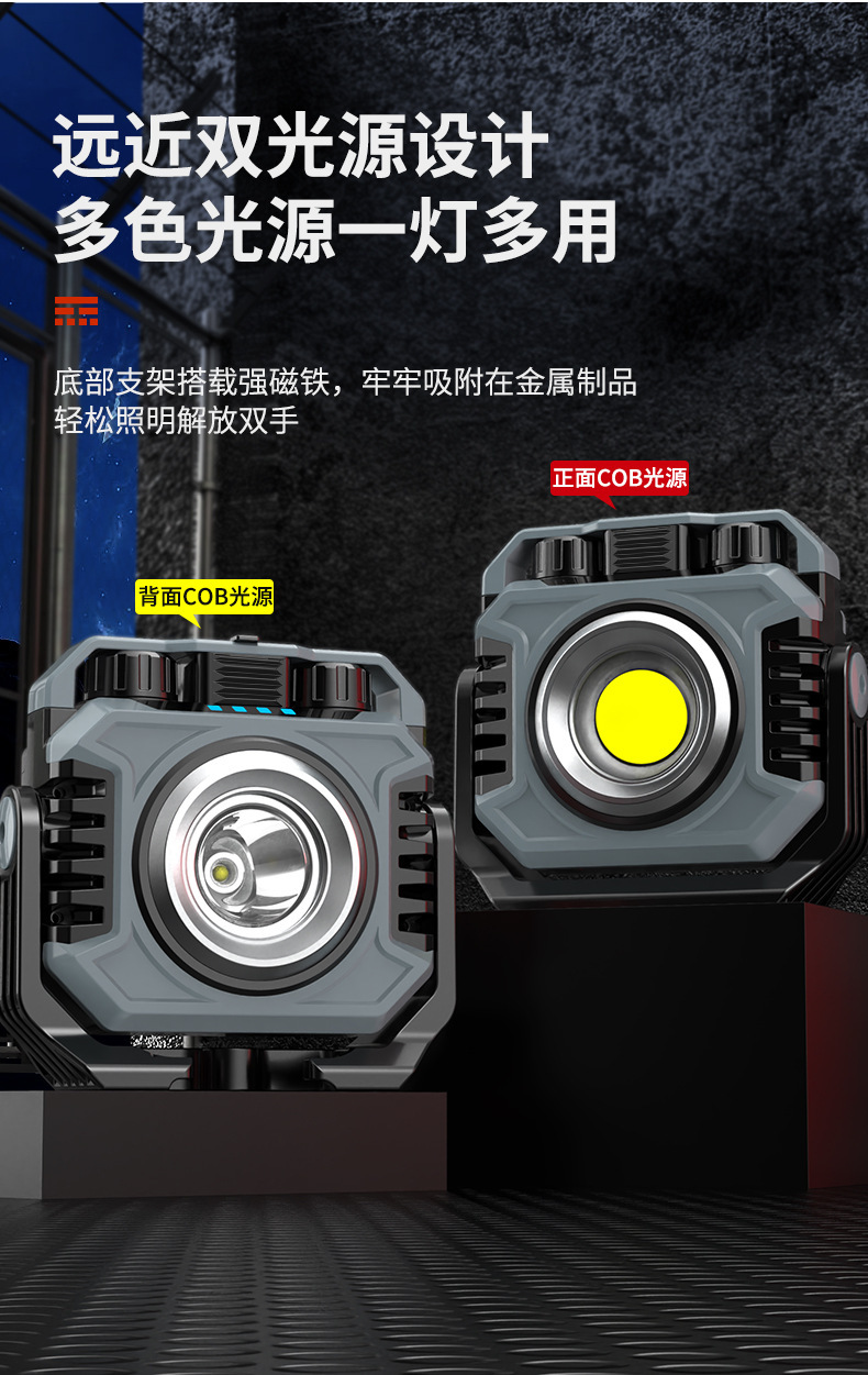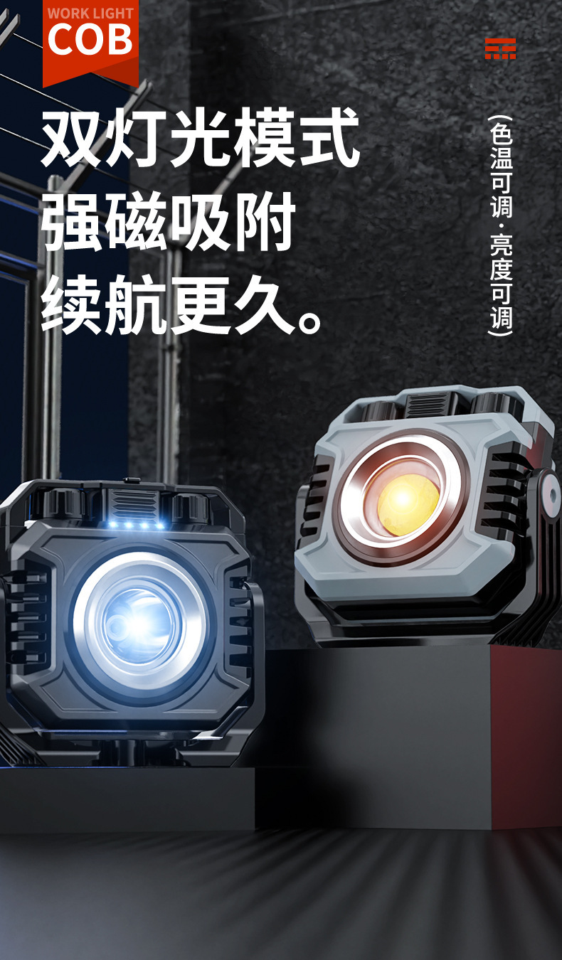 爆款COB远近双光源工作灯无极调光可挂可扣强磁吸附维修灯工作灯