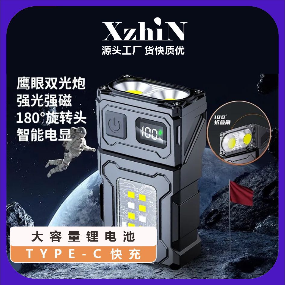 強力な光小型懐中電灯クロスボーダー屋外ポータブル強力な磁気検査作業灯デジタルディスプレイ小型鋼大砲キーホルダーライト
