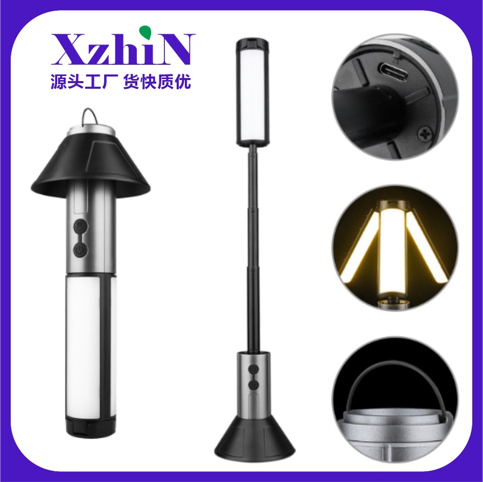 屋外多機能強力ライト懐中電灯、充電式ポータブルキャンプテントライト、補助光、雰囲気スタンド、伸縮式ライト、高輝度