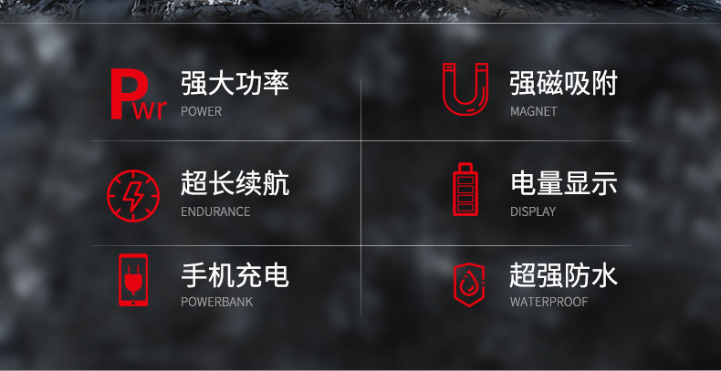 国境を越えた屋外の強い光作業灯キャンプランプのキーホルダーランプ携帯懐中電灯充電磁気吸引自動車修理灯