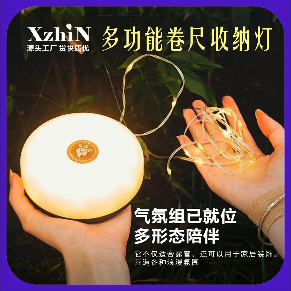 国境を越えた人気の屋外多機能キャンプランプ、テントランプ、多段階調整可能な巻尺、収納雰囲気ランプ、懐中電灯ストリングライト