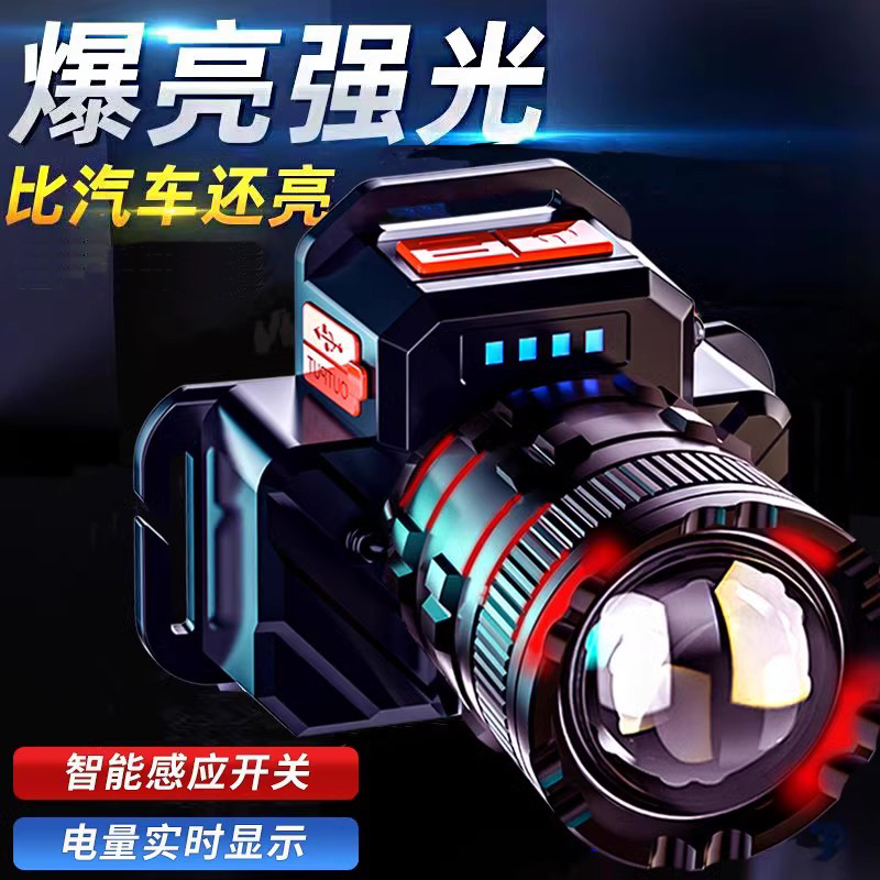 ヘッドライト、強力な光、超高輝度、充電式、ヘッドマウント型、高輝度、長持ちするリチウム電池、屋外釣り、軽量、センサー付き鉱山灯