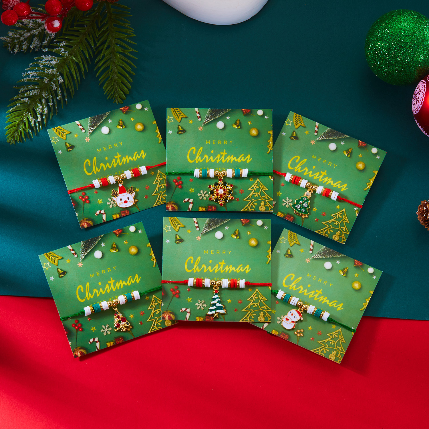 创意圣诞纸卡手链 跨境新款编织设计雪花圣诞树雪人简约百搭手链